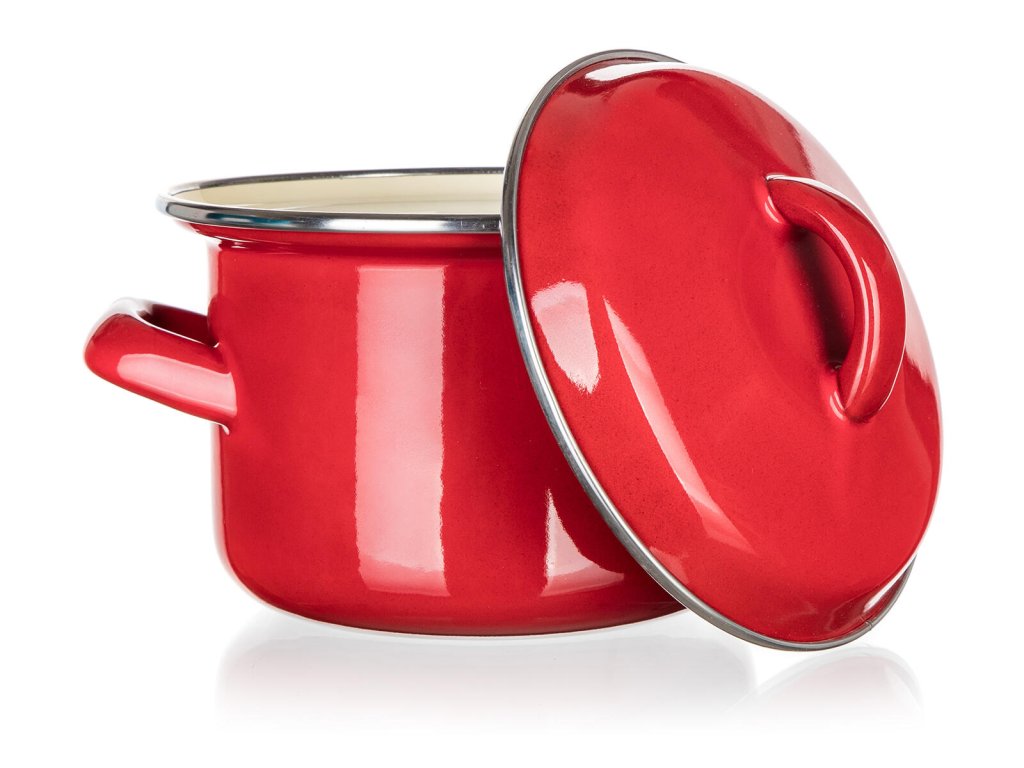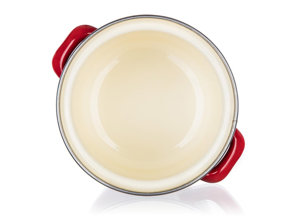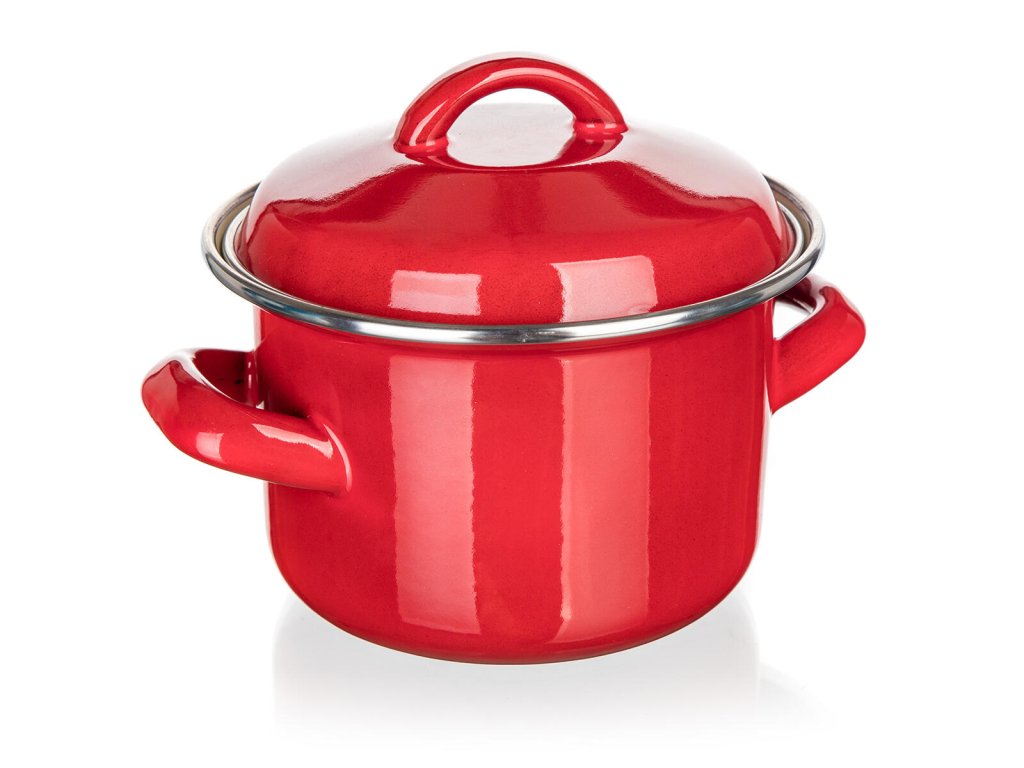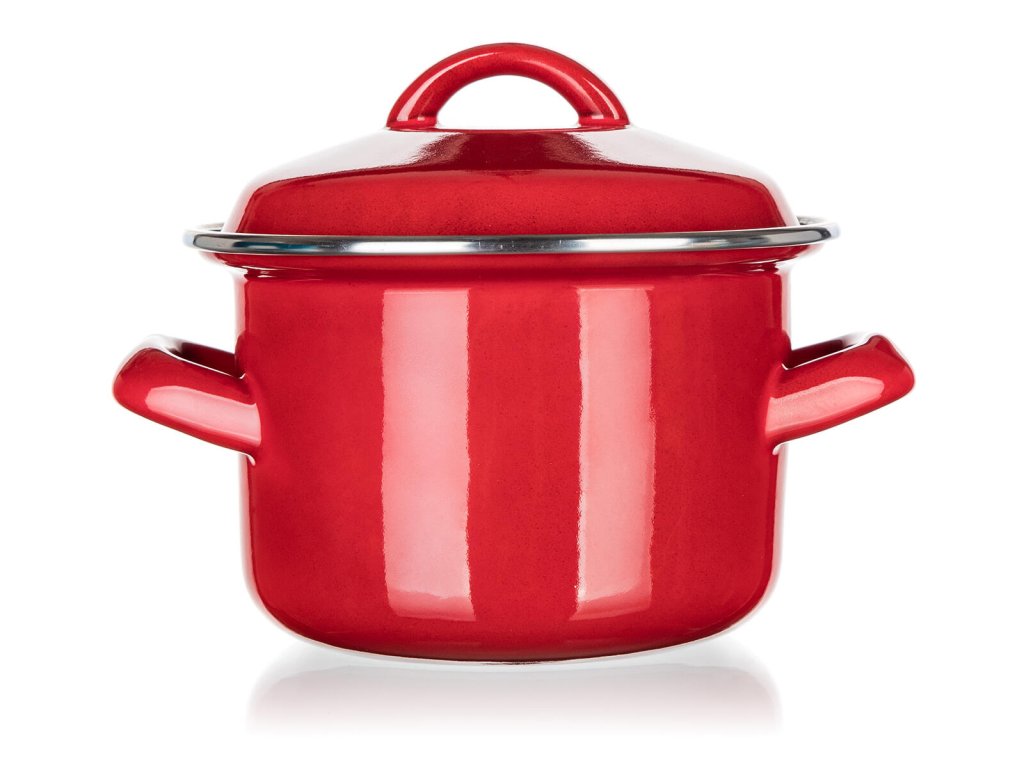 Hrnec + poklice pr. 12 cm, 0,78 l, MILTON, ČRV. objem: 0,78 l průměr: 12 cm výška (bez poklice): 8 cm materiál: smalt tloušťka stěny: 0,7 mm barva: červená, krémová Poklice i hrnec s červenou smaltovanou glazurou, černým dnem na vnější straně, s krémovou barvou na vnitřní straně. Hrnec lze používat na všechny typy varných desek včetně indukce. elektrika: ano plyn: ano sklokeramika: ano indukce: ano myčka: ne mikrovlnka: ne trouba: neObrázky jsou pouze ilustrativní.