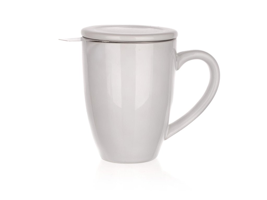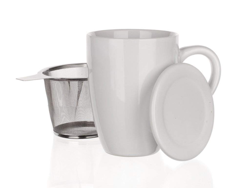 Hrnek 350 ml bílý keramický, víčko + nerez sítko. objem: 350 ml materiál: keramika, nerez barva: bílá Keramický hrnek s víčkem a nerezovým sítkem.Obrázky jsou pouze ilustrativní.