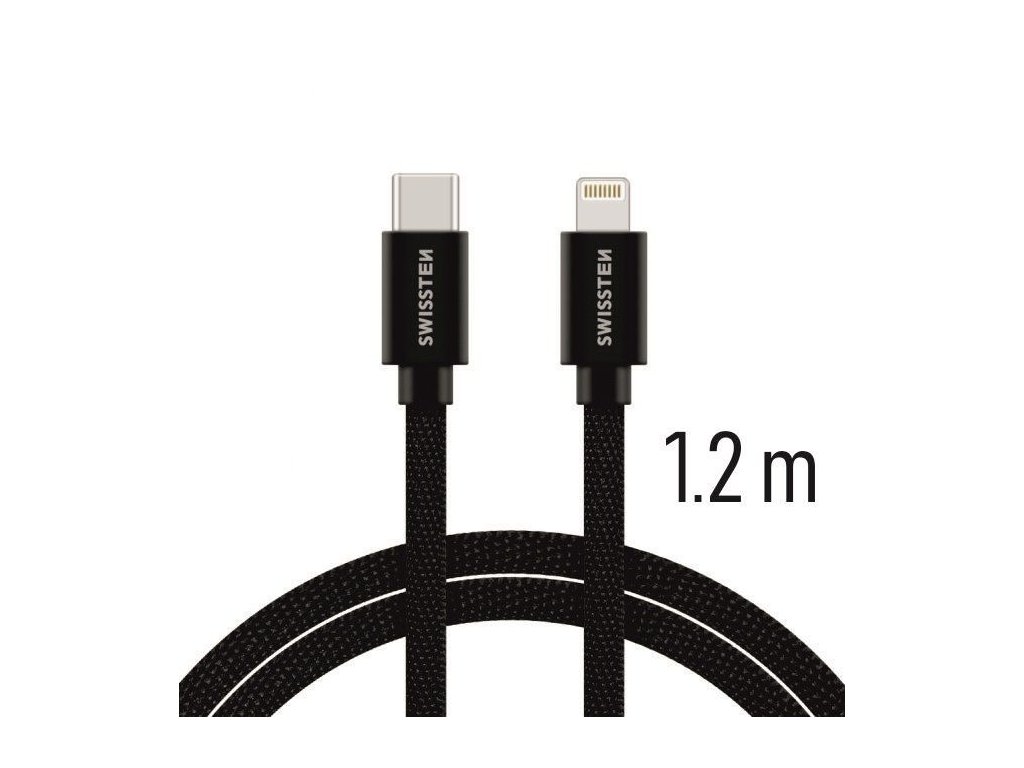 SWISSTEN kabel USB-C Lightning textilní 1,2m 3A černá (vhodné do aut)