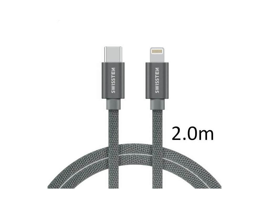 SWISSTEN kabel USB-C Lightning textilní 2m 3A stříbrná (vhodné do aut)