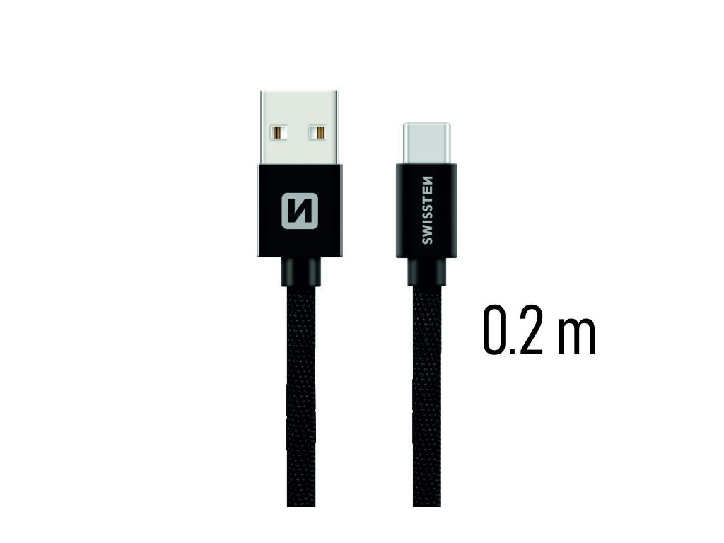 SWISSTEN kabel USB USB-C textilní 0,2m 3A černá