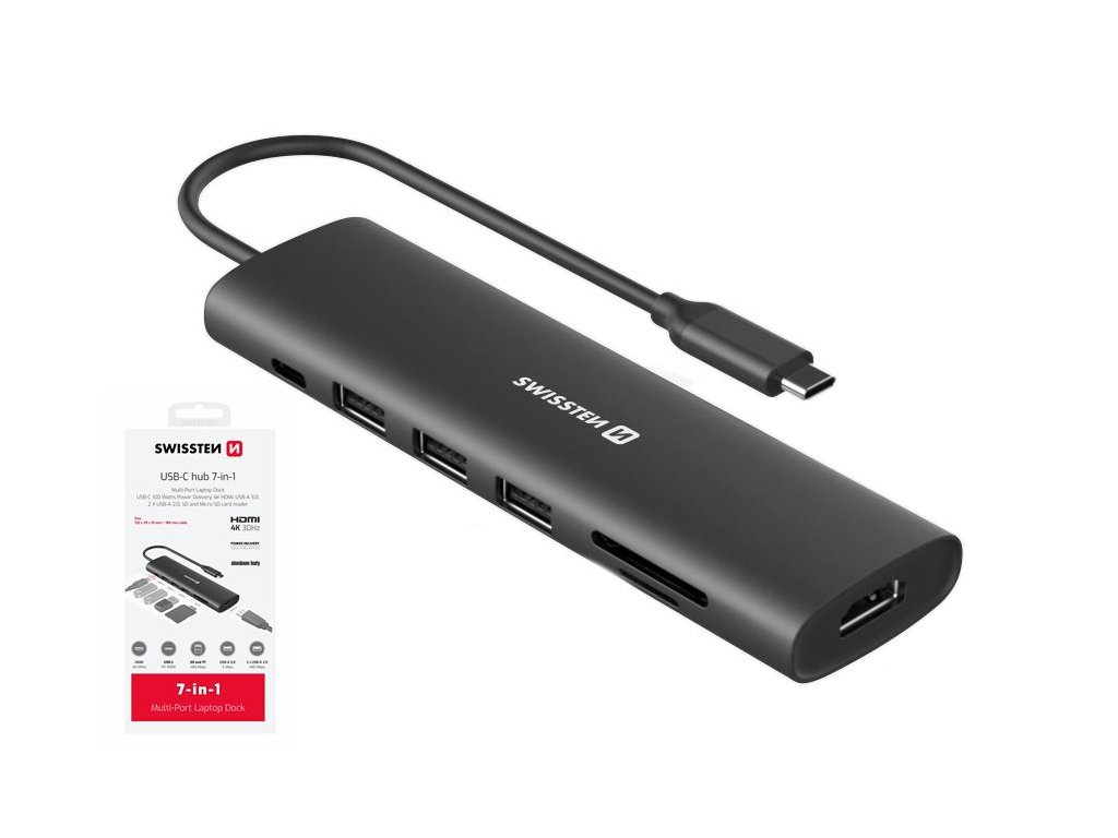 SWISSTEN USB-C HUB 7v1 USB-C 100W, HDMI 4K, 1xUSB-A 3.0, 2xUSB-A 2.0, SD, microSD