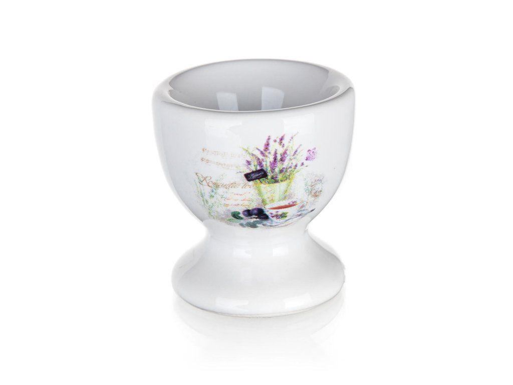 Kalíšek na vajíčko LAVENDER v bílé glazuře s dekorem levandule je vyrobený z keramiky.Obrázky jsou pouze ilustrativní.
