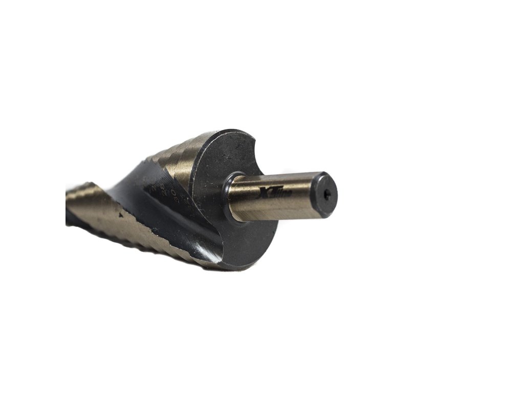 Stupňovitý vrták slouží pro vrtání kruhových otvorů v ocelových plátech a plechu (iměkčích materiálů jako je dřevo, plast apod.). Plynulé a bezhrotové vrtání bez deformace materiálu. Díky povrchové úpravě TiN a TiAIN je nástroj odolnější proti opotřebení čela i hřbetu. Povlak vrtáku snižuje energetickou náročnost obrábění a zvyšuje jeho spolehlivost.Obrázky jsou pouze ilustrativní.