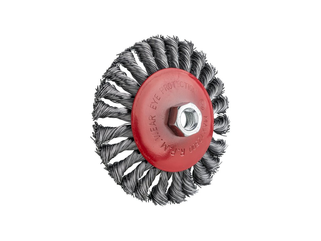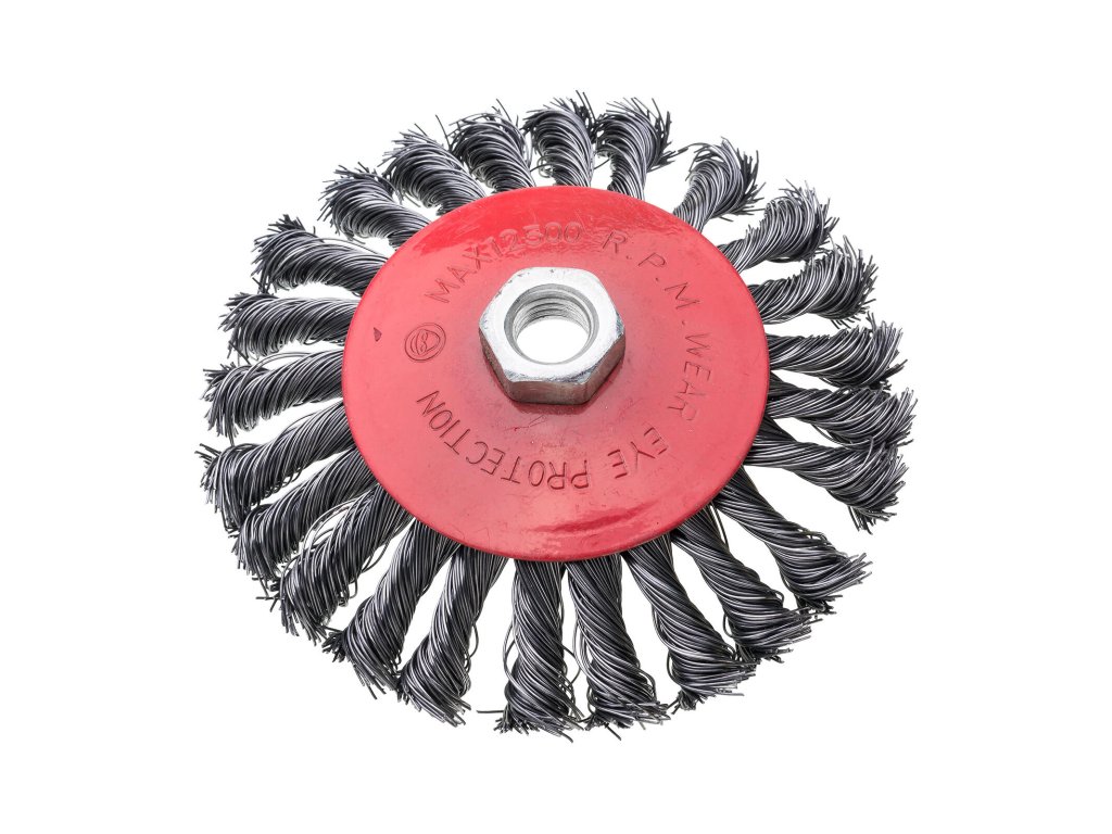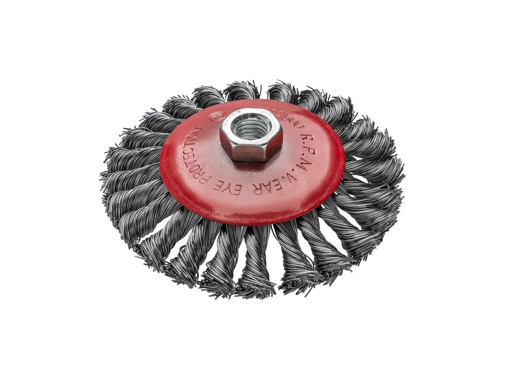 Kartáč miskový 125 / 0,3, M14, copy. průměr: 125 mm průměr drátu: 0,3 mm uchycení: M14 materiál: ocel K čištění povrchů od starých nátěrů a odstraňování rzi Vysoce kvalitní kartáč na brusky s univerzálním, standardním uchycením na závit M14. Kartáč je vyroben ze silného krouceného drátu, a lze jej proto použít k odstraňování silné rzi a nečistot. Tvar kartáče umožňuje práci v těžko přístupných místech.Obrázky jsou pouze ilustrativní.