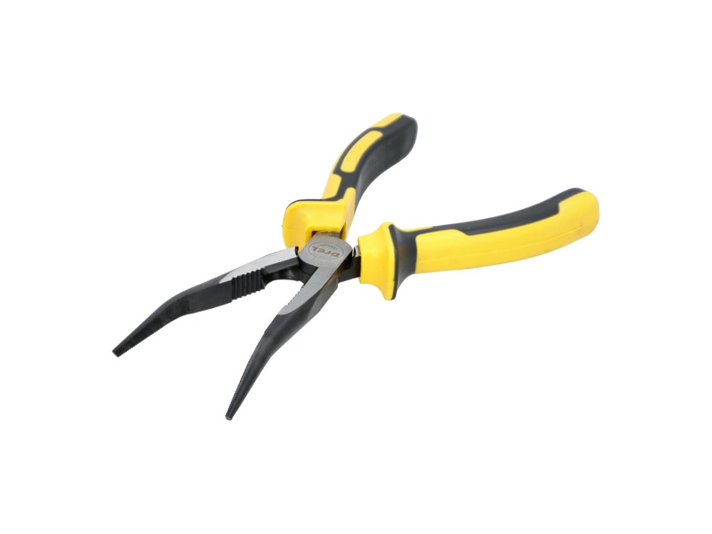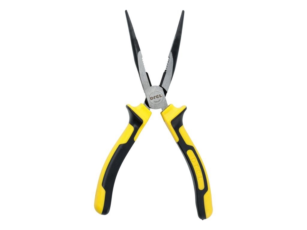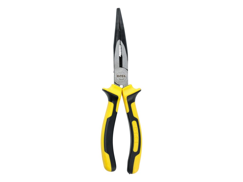 Kleště s dlouhými čelistmi, zahnuté, 200 mm DREL. délka: 200 mm Kleště z kalené oceli. Chromované kleště. Uhlíková ocel CS45. Dvojitá kompozitní rukojeť Mají široké spektrum použití, uplatnění najdou v každé domácí dílně i v kufříku profesionálního řemeslníka. Snadno stříhají dráty nebo drží vybraný prvek stavebního projektu.Obrázky jsou pouze ilustrativní.