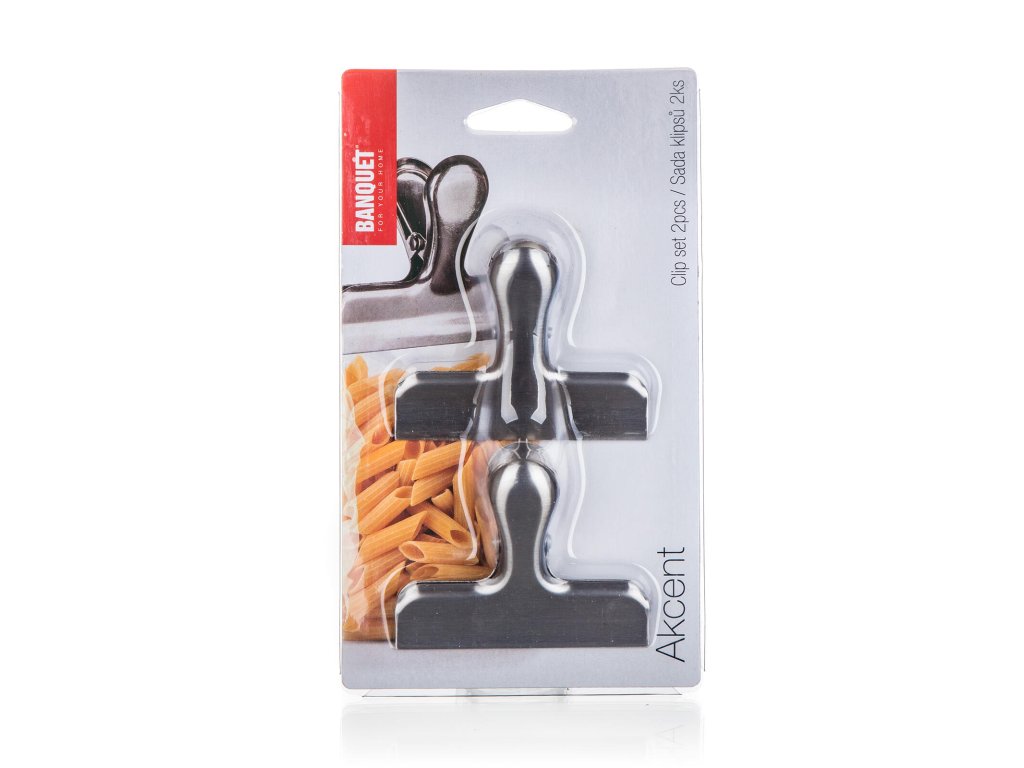 Sada nerezových klipsů AKCENT 2 ks, jsou vynikajícím pomocníkem k snadnému a opakovanému zavírání sáčků a různých obalů.Obrázky jsou pouze ilustrativní.