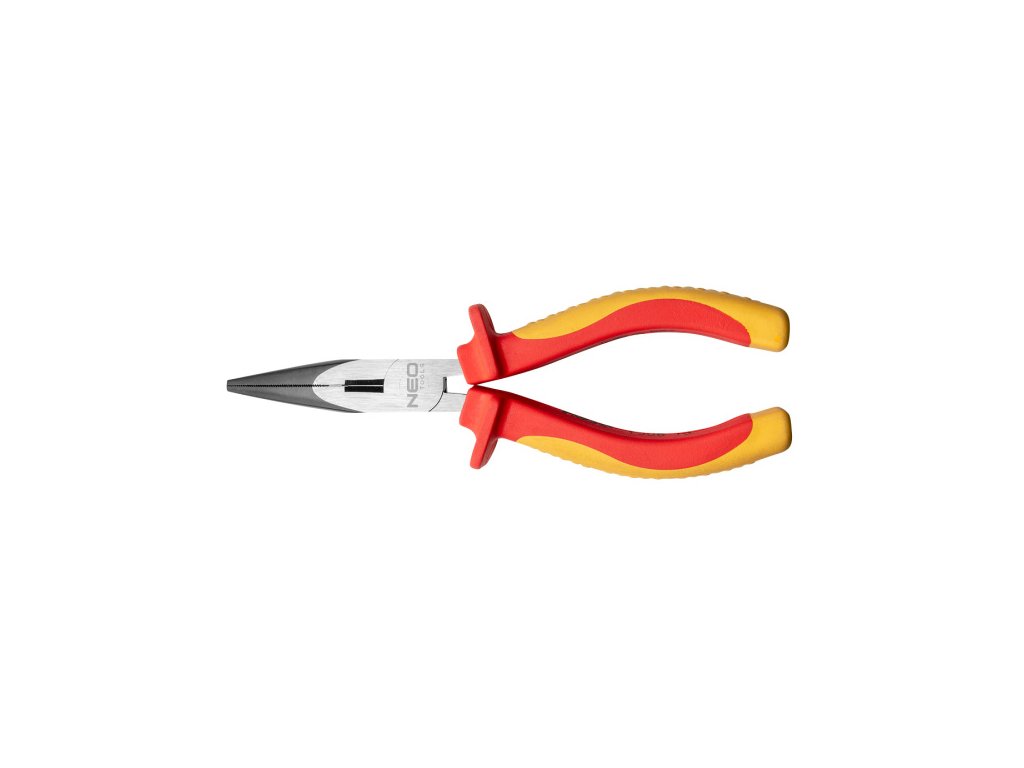 1000 V podlouhlé rovné kleště, 160 mm, tvrdost řezných ploch 55-60 HRc, CrV ocel, s certifikátem, DIN 5745, rukojeť ze 2 materiálů, TÜV Podlouhlé rovné kleště NEO 1000 V (ref. 01-242) 160 mm, vyrobené podle DIN 5745. Testováno pro práci pod napětím do 1000 V. Čelisti z vysoce kvalitní chrom-vanadové oceli, indukčně kalené (55-60 HRC), zajišťují pevný úchop a efektivní řezání. Ergonomická rukojeť z dvojitého materiálu zvyšuje uživatelský komfort. Kvalita nářadí je potvrzena certifikátem TÜV a 25letou zárukou výrobce. Značka NEO splňuje očekávání profesionálů.Obrázky jsou pouze ilustrativní.