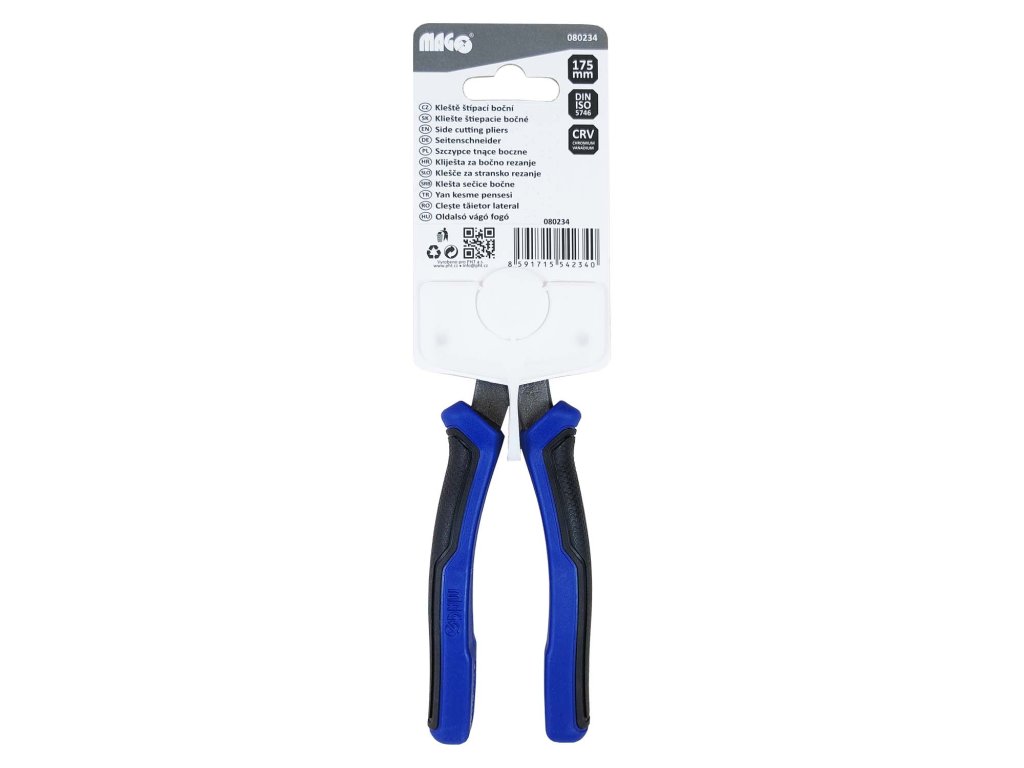 Robustní boční štípací kleště MAGG o délce 175 mm jsou určeny pro přesné a efektivní stříhání měkkých i tvrdších vodičů a drátů. Díky vysoce kvalitní chrom-vanadiové oceli (CrV) a precizně broušeným čepelím nabízejí dlouhou životnost a vynikající řezný výkon. Ergonomické, dvousložkové rukojeti zajišťují pohodlný a pevný úchop i při náročnějším použití.Hlavní vlastnosti: