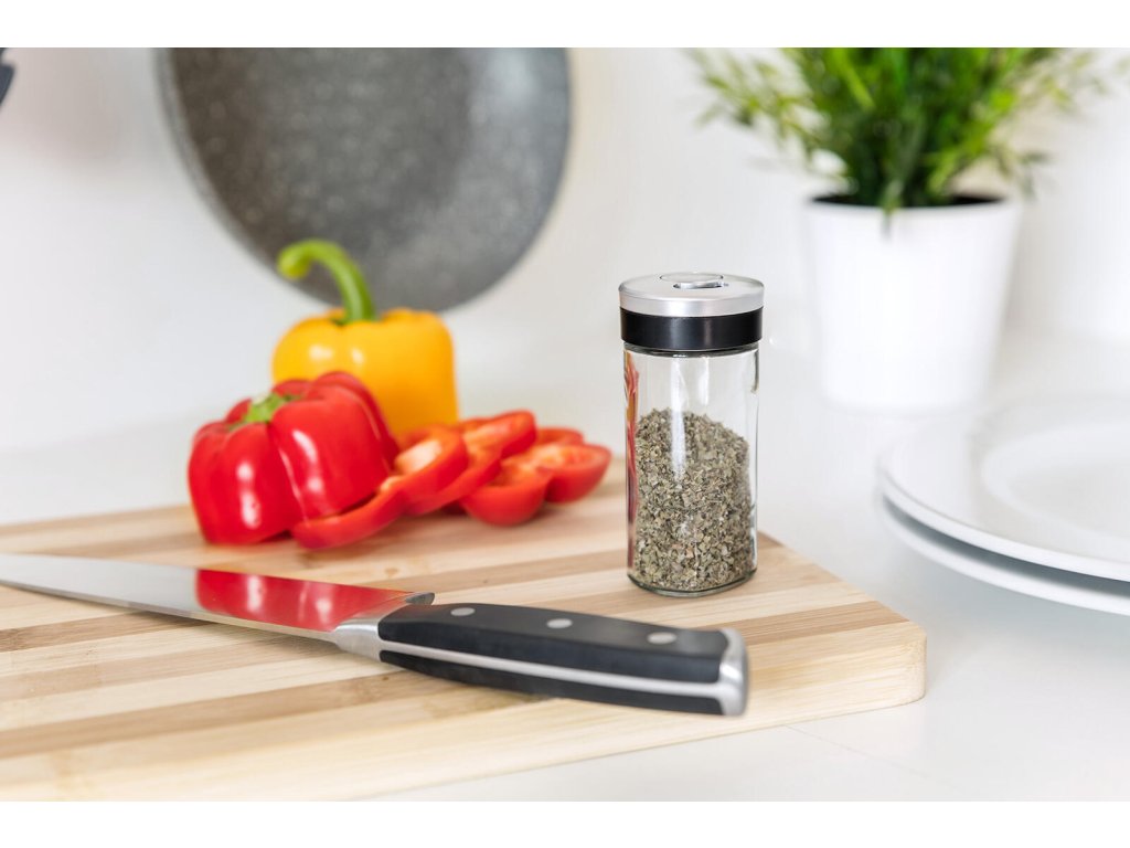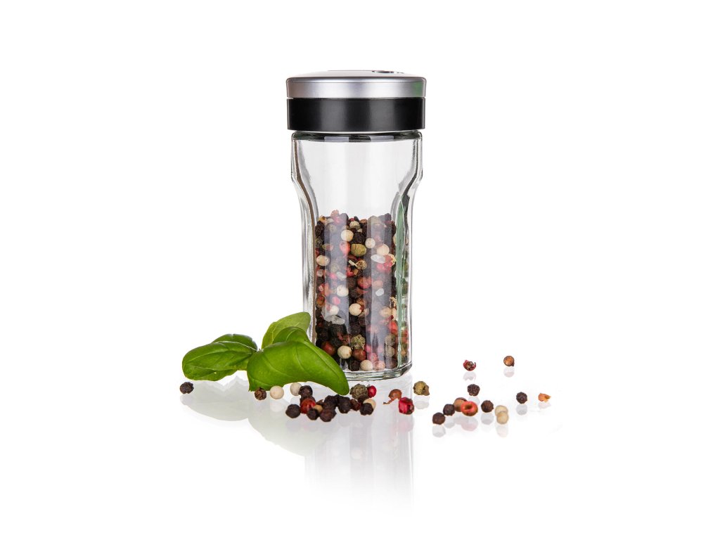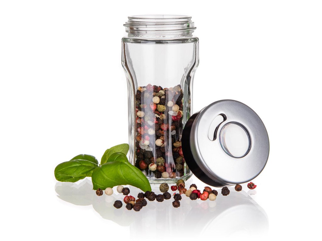 Kořenka VIRTU 80 ml, skl. .+ PH. objem: 80 ml materiál: sklo plastové víčko Skleněná kořenka VIRTU s plastovým víčkem. Kořenka má všestranné využití a to na základě víčka, které je opatřeno 3 různými otvory - jemný, hrubý, univerzální. Kořenka je vhodná na jemně mleté, ale i hrubší druhy koření a stejně tak je ideální pro koření typu hřebíček a celý pepř. Do myčky lze dát pouze skleněnou část kořenky.Obrázky jsou pouze ilustrativní.