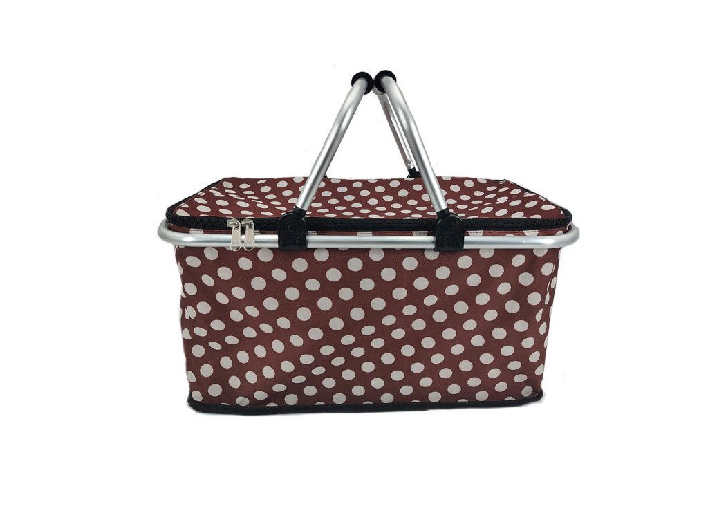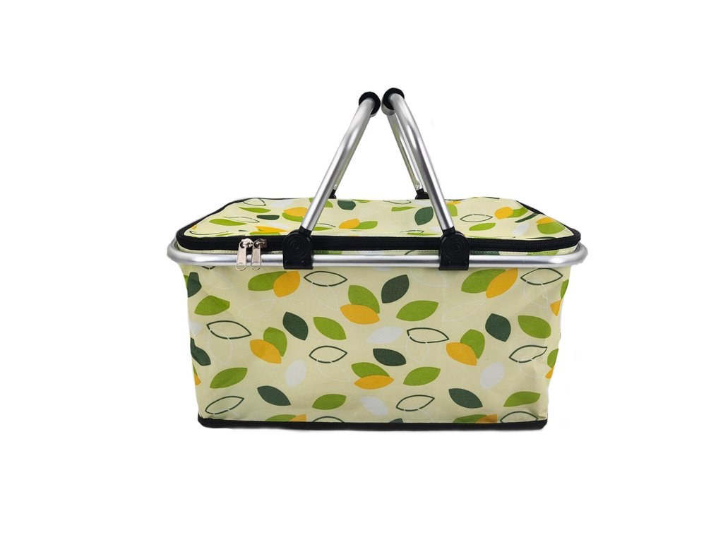 Košík kempingový skládací 48 x 24 x 28 cm, Al + polyester, mix dekorů. rozměry: 48 x 24 x 28 cm materiál: hliník, polyester Skládací kempingový košík s uzavíráním na zip lze využít na pikniky, do lesa a všude tam kde je nutné něco jednoduše přenést. Vyroben je z omyvatelného textilu, praktické přenášení zajišťují dvě madla s měkkým úchytem. Je skládací pro lepší úschovu.Obrázky jsou pouze ilustrativní.