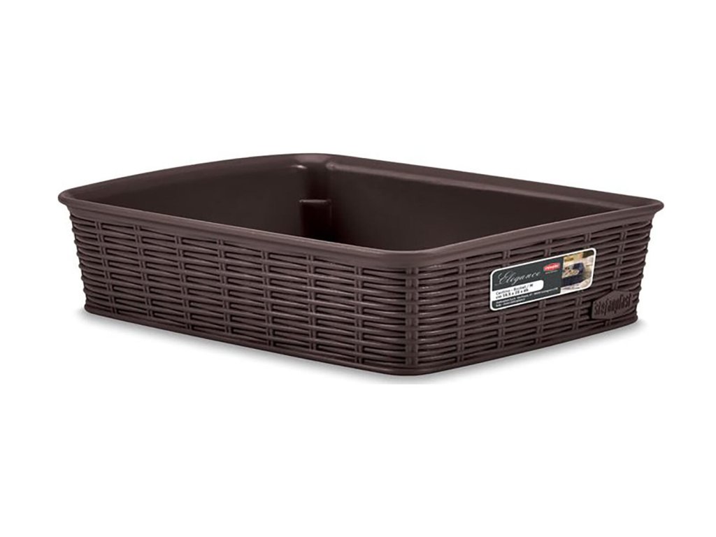 Košík ELEGANCE 25 x 19,5 x 6 cm, PH HN. rozměry: 25 x 19,5 x 6 cm materiál: plast barva: hnědá Košík ELEGANCE je praktický pomocník pro uchovávání a skladování různých drobných předmětů, ale také pečiva či potravin.Obrázky jsou pouze ilustrativní.