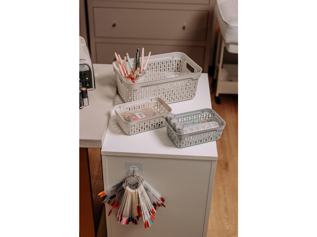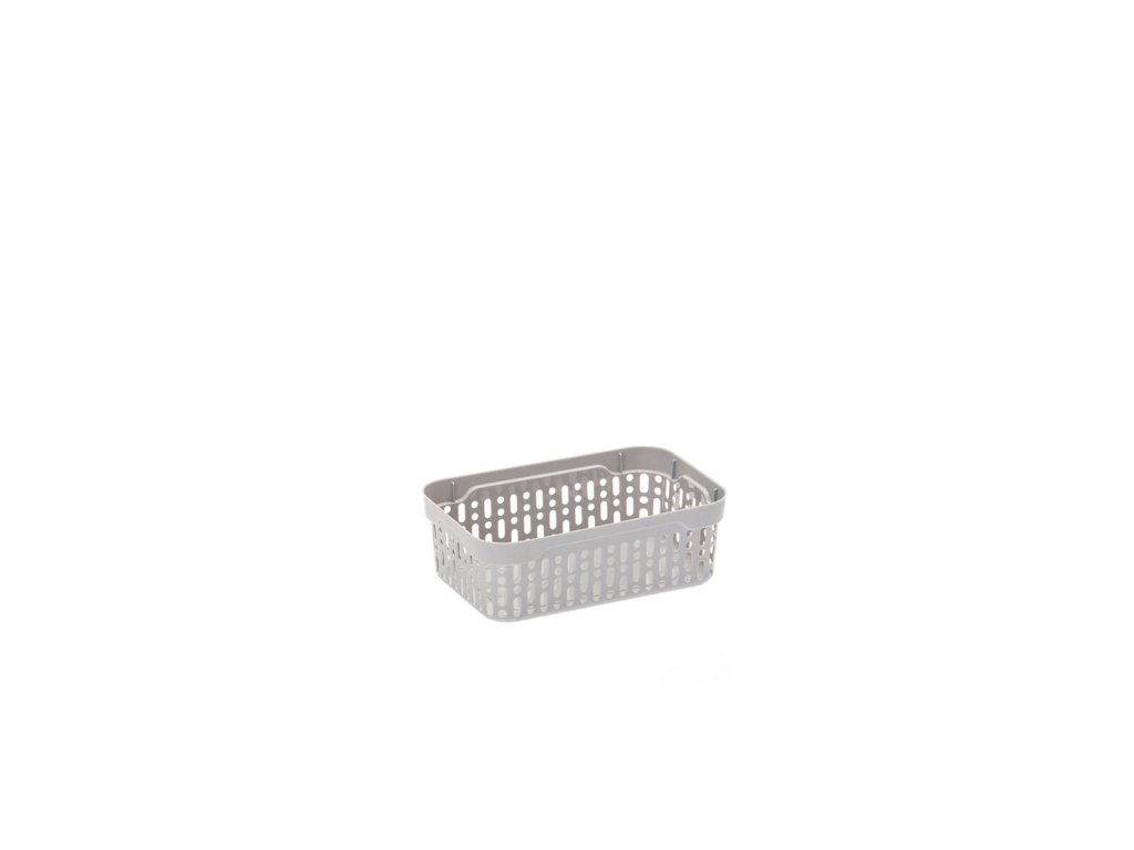 Košík MORSETTA 17,7 x 11,7 x 6 cm, PH mix barev. rozměry: 17,7 x 11,7 x 6,1 cm materiál: plast mix barev: světle modrá, bílá kouřová, měděná, tmavě šedá, světle šedá, vínová, černá, béžová Plastový košíček je univerzální pomocník v domácnosti. Je možné ho využít pro úschovu věcí v domácnostech nebo přenášení a odložení věcí. Košíček je velmi lehce omyvatelný od nečistot.Obrázky jsou pouze ilustrativní.
