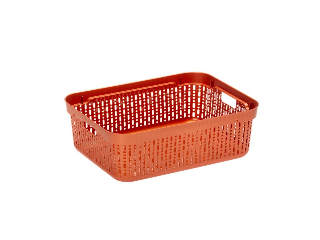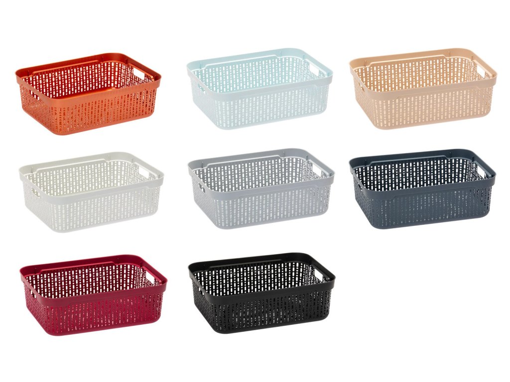 Košík MORSETTA 39,3 x 30 x 13 cm, PH mix barev. rozměry: 39,34 x 29,94 x 13,1 cm materiál: plast mix barev: světle modrá, bílá kouřová, měděná, tmavě šedá, světle šedá, vínová, černá, béžová Plastový košíček je univerzální pomocník v domácnosti. Je možné ho využít pro úschovu věcí v domácnostech nebo přenášení a odložení věcí. Košíček je velmi lehce omyvatelný od nečistot.Obrázky jsou pouze ilustrativní.
