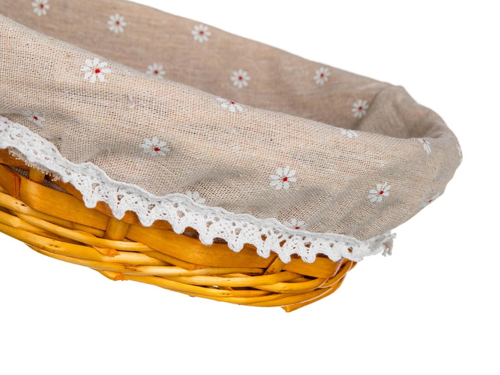 Košík DAISY kulatý, 25 x 8 cm, proutěný. průměr: 25 cm výška: 8 cm materiál: proutí, bavlna Proutěný košík DAISY je vhodný pouze pro dekorativní účely. Dodáván v hnědé barvě kulatého tvaru, uvnitř bavlněná látka dekorem kopretin a krajkovým lemem.Obrázky jsou pouze ilustrativní.