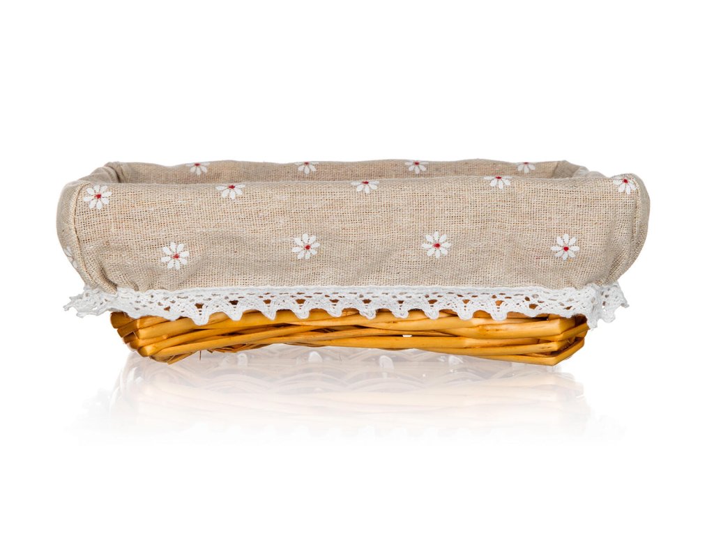 Košík DAISY, obdélníkový, 22 x 16 x 6,5 cm, proutěný. rozměry: 22 x 16 x 6,5 cm materiál: proutí, bavlna Proutěný košík DAISY je vhodný pouze pro dekorativní účely. Dodáván v hnědé barvě kulatého tvaru, uvnitř bavlněná látka dekorem kopretin a krajkovým lemem.Obrázky jsou pouze ilustrativní.