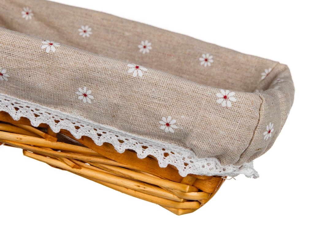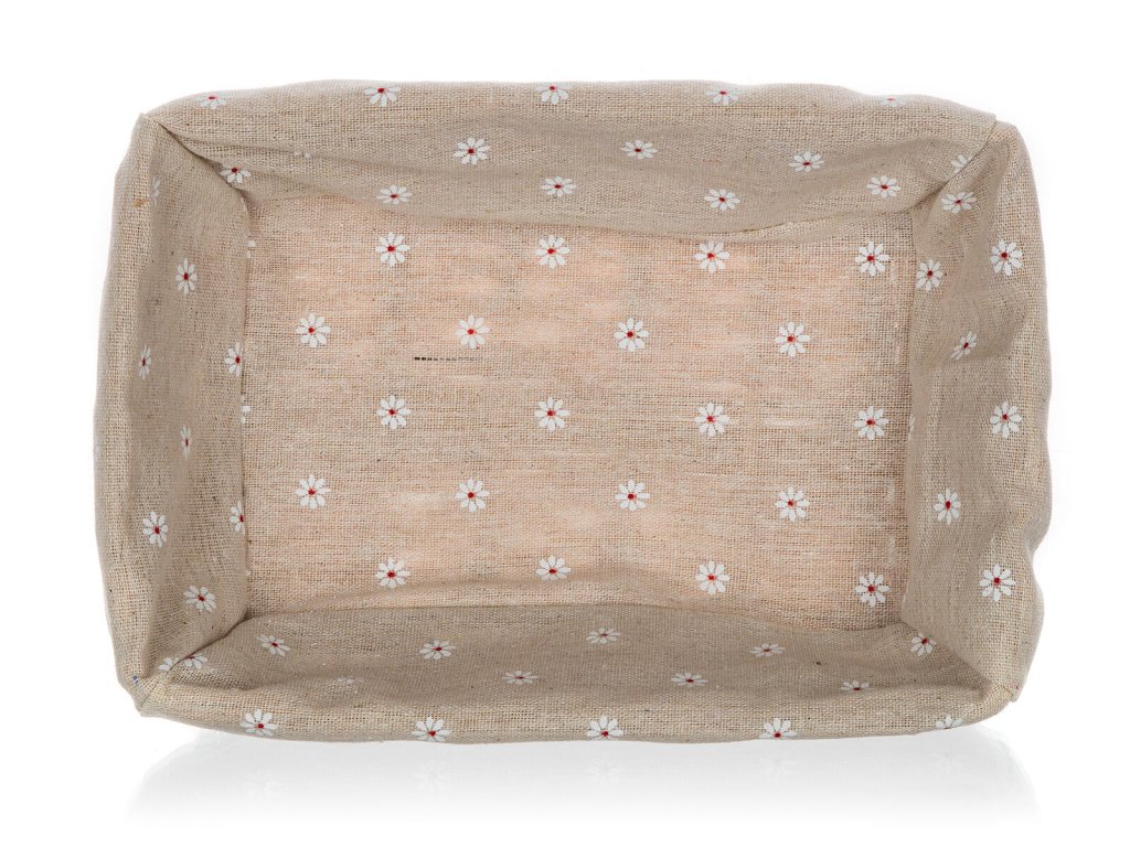 Košík DAISY, obdélníkový, 27 x 18 x 7 cm, proutěný. rozměry: 27 x 18 x 7 cm materiál: proutí, bavlna Proutěný košík DAISY je vhodný pouze pro dekorativní účely. Dodáván v hnědé barvě kulatého tvaru, uvnitř bavlněná látka dekorem kopretin a krajkovým lemem.Obrázky jsou pouze ilustrativní.