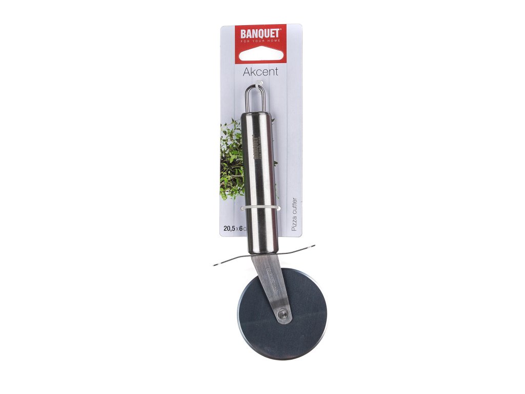 Kráječ na pizzu 20,5 cm, AKCENT, nerez. délka: 20,5 cm šířka: 6 cm materiál: nerez Kolečko krájecí AKCENT je skvělým pomocníkem pro snadné krájení pizzy a těsta. Vyrobeno z nerezové oceli. Kolečko je opatřeno praktickým očkem pro možnost zavěšení, snadno se udržuje a lze mýt v myčce na nádobí. Řada kuchyňského náčiní AKCENT splňuje náročné požadavky profesionálů a je vhodná i pro domácí použití.Obrázky jsou pouze ilustrativní.