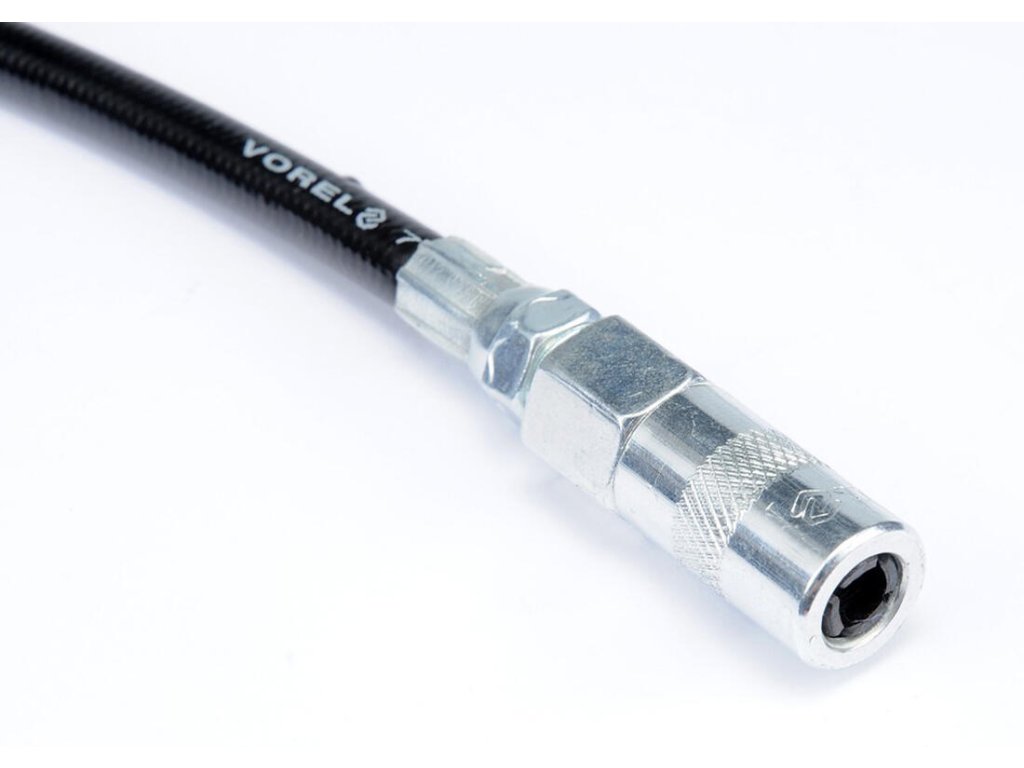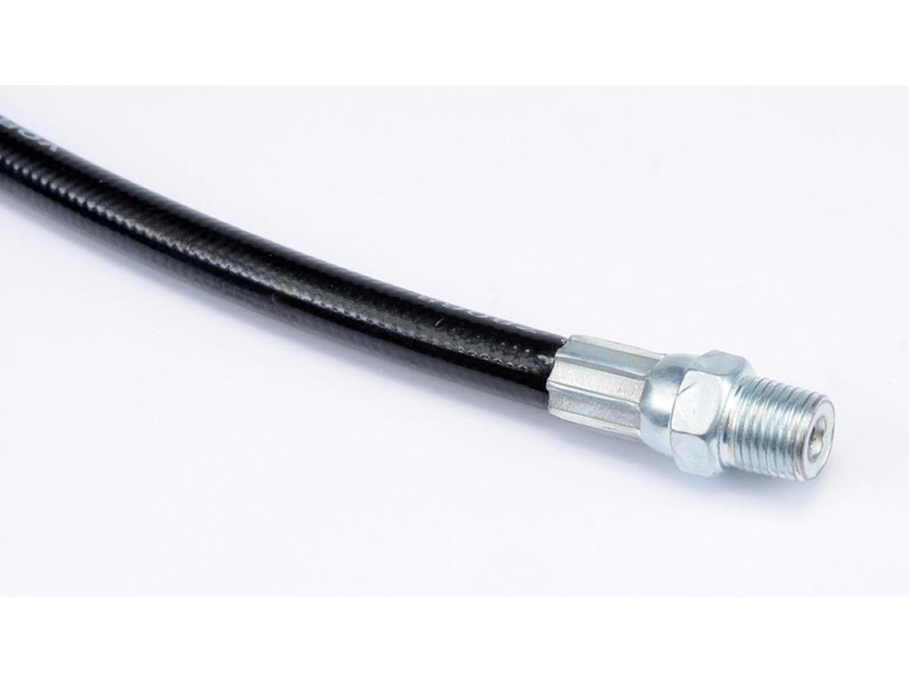 Hadice k maznici pákové 500 mm. délka: 500 mm max. mazací tlak: 31 MPa (4500PSI) připojovací závit: G1/8" Koncová 4čelisťová hlava pro mazací niple s hlavičkou průměr 6 - 7 mm. Koncová hlava vnější rozměry průměr 14 mm, délka 37,5 mm. Náhradní tlaková hadice pro mazací lisy s kvalitní 4čelisťovou hlavou pro připojení k mazacím niplům.Obrázky jsou pouze ilustrativní.