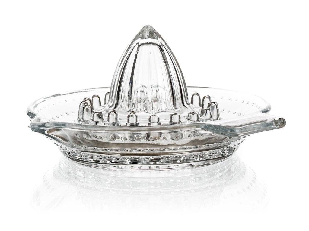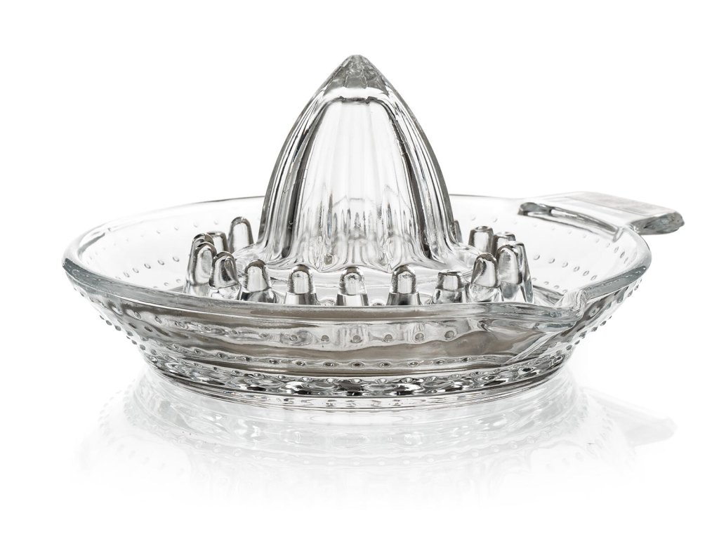 rozměry: 13 x 6,5 cm materiiál: sklo Slouží k vymačkávání šťávy z pomerančů, citronů, limetek a mandarinek. Je vybaven hubičkou pro snadné vylévání.Obrázky jsou pouze ilustrativní.