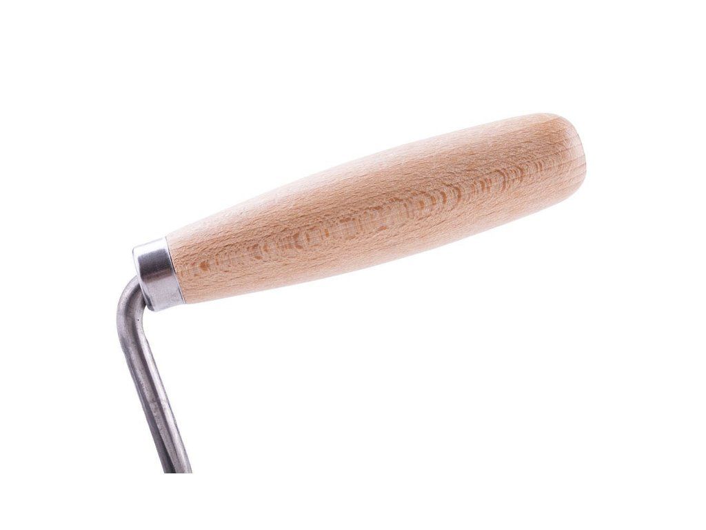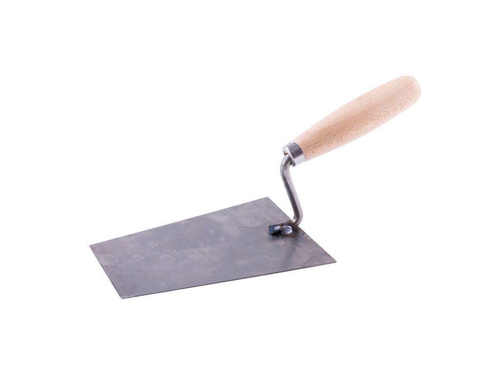 Zednická svařovaná lžíce s dřevěnou lakovanou ručkou.
