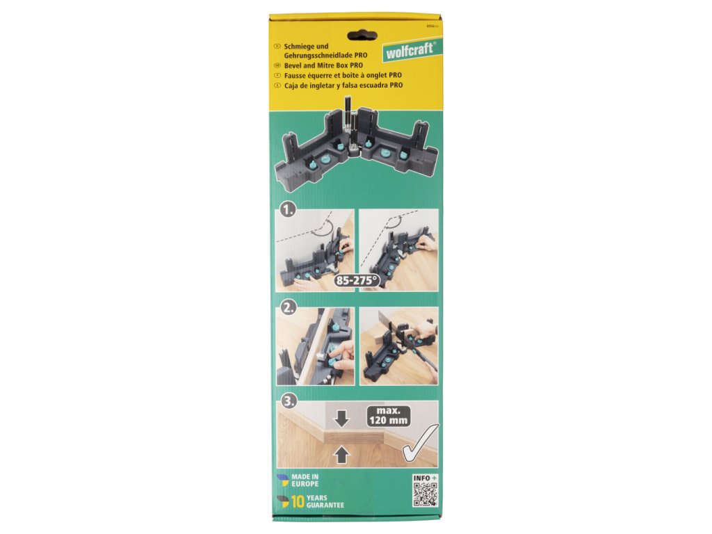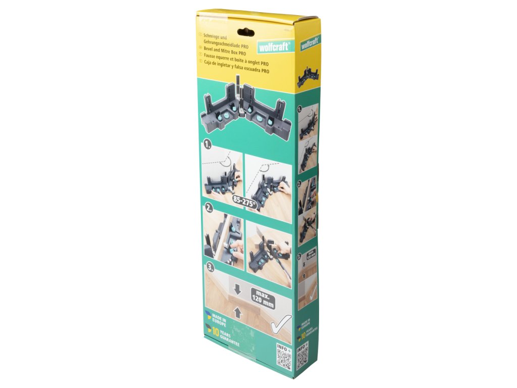 Pokosnice a řezací šablona PRO pro přenášení a řezání přesně lícujících zkosení je chytré řešení 2 v 1, které Vám zaručí přesné řezání podlahových lišt do výšky 120 mm. Pomocí dvou pohyblivých ramen můžete snímat vnitřní a vnější úhly od 85° do 275° přímo na stěně. Úhlový rozměr můžete zafixovat pomocí dvou zajišťovacích šroubů. Při přenášení úhlů ve stísněných prostorách Vám pomohou kovové dorazové lišty. Dorazy pokosové řezací předlohy lze přizpůsobit tloušťce materiálu podlahových lišt až do 40 mm, takže je můžete bezpečně upevnit. Pokud chcete dlouhé podlahové lišty přidržet k řezání, jednoduše vyjměte integrované opěrné kozlíky a umístěte je na požadované místo. Protože se pokosnice a řezací šablona obsluhuje výhradně zepředu, je přenesení úhlu stěny na lištu automatické a nevyžaduje žádný zákrok. Čtyři integrované vodicí kolíky o délce 140 mm umožňují provádět čisté pokosové řezy ruční pilou. Válečková pouzdra z plastu na vodicích kolících přitom zabraňují naklánění pily a chrání tak pilový plátek. Automatické půlení úhlů zaručuje přesné zkosení. Pokosnice a řezací šablona jsou pro bezpečnou práci vybaveny protiskluzovými podložkami. Spolehněte se na robustní a odolný výrobek nejvyšší kvality „Made in Europe“, na který se vztahuje desetiletá záruka společnosti wolfcraft. Vlastnosti produkt 2 v 1 k přenášení úhlů a vedenému řezání přesných zkosení – ideální pro podlahové lišty do výšky 120 mm 2 pohyblivá ramena k odměření vnitřních a vnějších úhlů v rozsahu 85°–275° kovové dorazové lišty k odměřování úhlů v úzkých prostorách nebo prostorách s krátkými rameny 2 zajišťovací šrouby pro spolehlivou fixaci rozměru úhlu uživatelsky přívětivé ovládání pouze zepředu pro snadné přenesení úhlu na podlahové lišty bez dlouhého rozmýšlení posuvné dorazy se zajišťovacím šroubem pro bezpečné upevnění lišt do tloušťky materiálu 40 mm 4 integrované vodicí kolíky o délce 140 mm Vám umožňují čisté pokosové řezy ruční pilou vzdálenost mezi vodicími kolíky lze nastavovat o 2 mm pro individuální přizpůsobení na tloušťku pilového plátku plastová válečková pouzdra na vodicích kolících brání naklánění pily a chrání pilový plátek 2 integrované odnímatelné opěrné kozlíky pro stabilizaci dlouhých podlahových lišt při řezání protiskluzové podložky na spodní straně pro bezpečnou práci robustní a s dlouhou životností díky kvalitnímu provedení nejvyšší kvalita „Made in Europe“ se zárukou 10 let Technické údaje Pracovní výška 120 mm Úhel min. - max. 85 – 275° Rozsah dodávky 1 pokosnice a řezací šablona PRO 2 opěrné kozlíky Chcete-li objednat náhradní díly nebo máte-li dotazy, obraťte se prosím na zákaznický servis společnosti wolfcraft. Pokud si chcete objednat náhradní díly, klikněte sem. 115981168 Skupina vodicích pouzder 6956 115981169 Montážní skupina podpěrné pily 6956 115981170 Skupina upínacích šroubů 6956 115981171 Montážní skupina půlkulatých nýtů 6956 116620746 Pryžová nožka (staré č. 117710142) 119906956 Taška na příslušenství 6956 140006956 Obal 6956 143006956 Příručka 6956 Kontaktní informace výrobce/dovozce: wolfcraft GmbH Wolffstraße 1 56746 Kempenich, Germany Tel: +49 2655 510 info@wolfcraft.com www.wolfcraft.comObrázky jsou pouze ilustrativní.