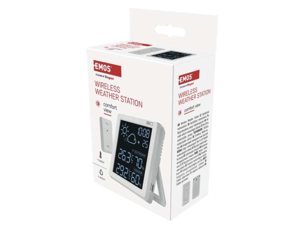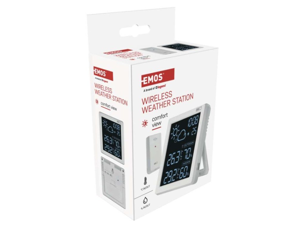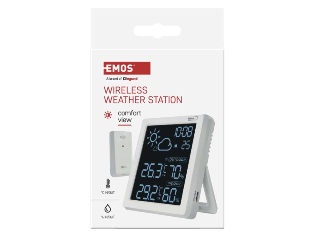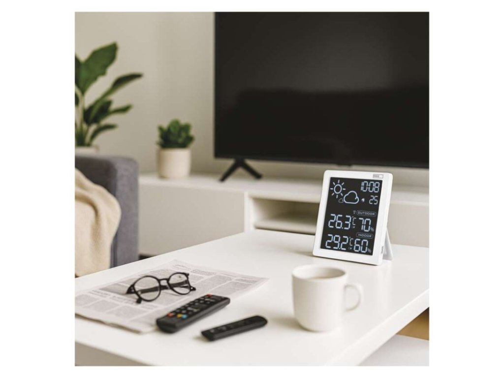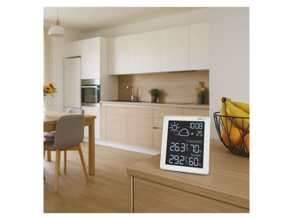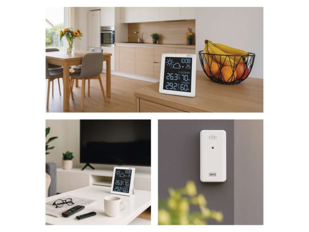 12/24 formát času: ano|anemometr: ne|barevný displej (black mask) podsvícený: ano|barometr: ne|budík: ano|časová pásma: ne|další funkce: –|datum: ne|dosah čidla: až 50 m|drátová sonda k čidlu: ne|elektronické plošné podsvícení: ano|fáze měsíce: ne|hodiny: ano, quartz|kalendář: ne|kompatibilita: –|korekce nadmořské výšky: ne|LED podsvícení displeje: ano|min. a max. teplota: ano|možné další čidlo: ano, 1 čidlo (E05018)|možnost nastavení jednotky teploty: °C/°F|možnost pověšení na zeď: ano|napájení čidla: 2× 1,5 V AAA (nejsou součástí balení)|napájení stanice: 2× 1,5 V AAA (nejsou součástí balení)|notifikace do mobilní aplikace: ne|opakované buzení: ano|ovládání hlasovými asistenty: ne|podporované OS: –|předpověď počasí: ano|přenosová frekvence: 433 MHz|prodejní obal: 1 ks, krabička|produkt: meteostanice|projekce: ne|protokol: –|provedení: bezdrátové|rozměr čidla: 50 × 25 × 95 mm|rozměr hlavní jednotky: 85 ×20 × 96 mm|síťový adaptér: ano, USB-C 5 V/1 A (není součástí balení)|srážkoměr: ne|teplotní výstraha: ne|trend teploty: ne|trend tlaku: ne|trvalé podsvícení: ano|velikost displeje: 65 × 76 mm|venkovní teplota: -50 °C až +70 °C, rozlišení 0,1 °C|venkovní vlhkost: 20 % až 95 % RV, rozlišení 1 %|vnitřní teplota: -10 °C až +50 °C, rozlišení 0,1 °C|vnitřní vlhkost: 20 % až 95 % RV, rozlišení 1 %Obrázky jsou pouze ilustrativní.