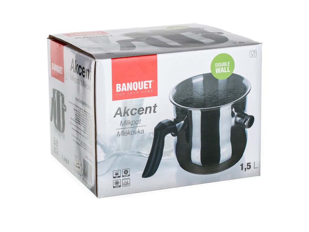 Mlékovar AKCENT 1,5 l, nerez. objem: 1,5 l materiál: nerez Nerezová mlékovka AKCENT. Dvojstěnná mlékovka bez poklice s plastovým držadlem, vnější povrch lesk, vnitřní mat. Boční strana mlékovky obsahuje napouštěcí ventil na vodu, při uvedení do varu píská.Obrázky jsou pouze ilustrativní.