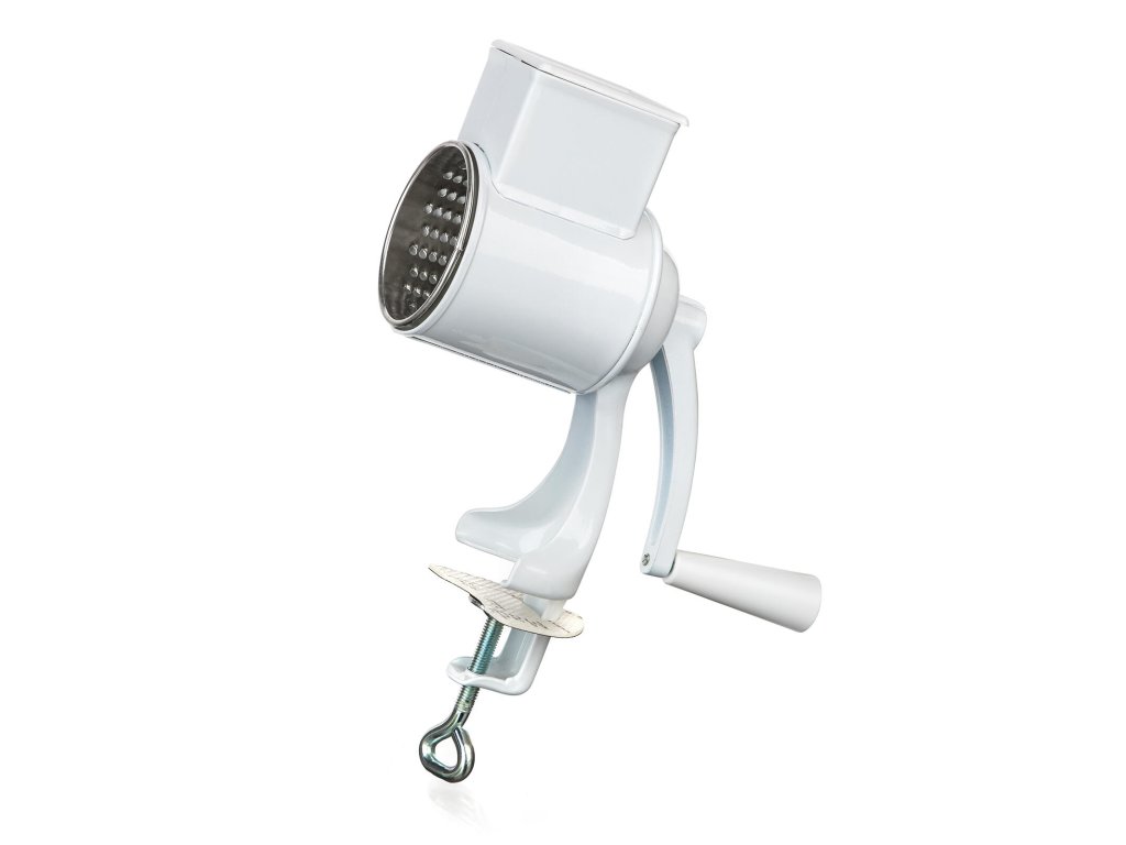 Mlýnek na strouhanku o celkové výšce 30,5 cm, buben z pocínovaného plechu s průměrem 7,5 cm, kovové tělo mlýnku je ošetřeno práškovou barvou v bílém odstínu. Vyrobené v České republice.Obrázky jsou pouze ilustrativní.