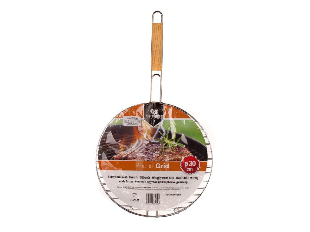 Mřížka opékací kulatá pr. 30 cm, BBQ, dřev. rukojeť. půměr: 30 cm Kularý grilovací rošt s dřevěnou rukojetí využijete pro snadné grilování masa. Rošt je vyroben z pochromované oceli.Obrázky jsou pouze ilustrativní.