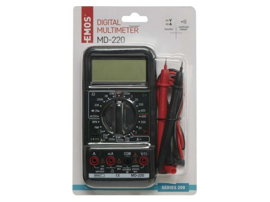 AC napětí: 2–600 V|AC proud: 2 mA – 10 A|automatické vypnutí: ne|bezkontaktní detekce AC napětí: ne|DC napětí: 200 mV – 600 V|DC proud: 2 mA – 10 A|elektrický odpor: 200 Ohm – 20 MOhm|indikace slabé baterie: ano|klešťový multimetr: ne|kontaktní detekce AC napětí: ne|měření teploty: ne|napájení: 1× 9 V (součástí balení)|podsvícení displeje: ne|prodejní obal: 1 ks, blistr|rozměr: 32 × 85 × 165 mm|součást dodávky: baterie, návod, měřicí hroty|spojitost obvodů: ano|test baterií: ne|test diod: ano|test tranzistorů: ano|volba rozsahu: manuální|záznam max. hodnoty: ne|záznam naměřené hodnoty: ne|zobrazení displeje: 3,5 digitObrázky jsou pouze ilustrativní.