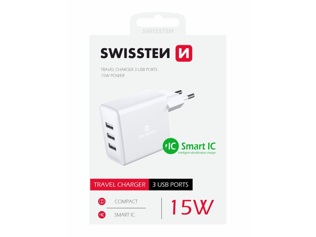 SWISSTEN adaptér 230V/3A 15W 3xUSB BÍLÁ