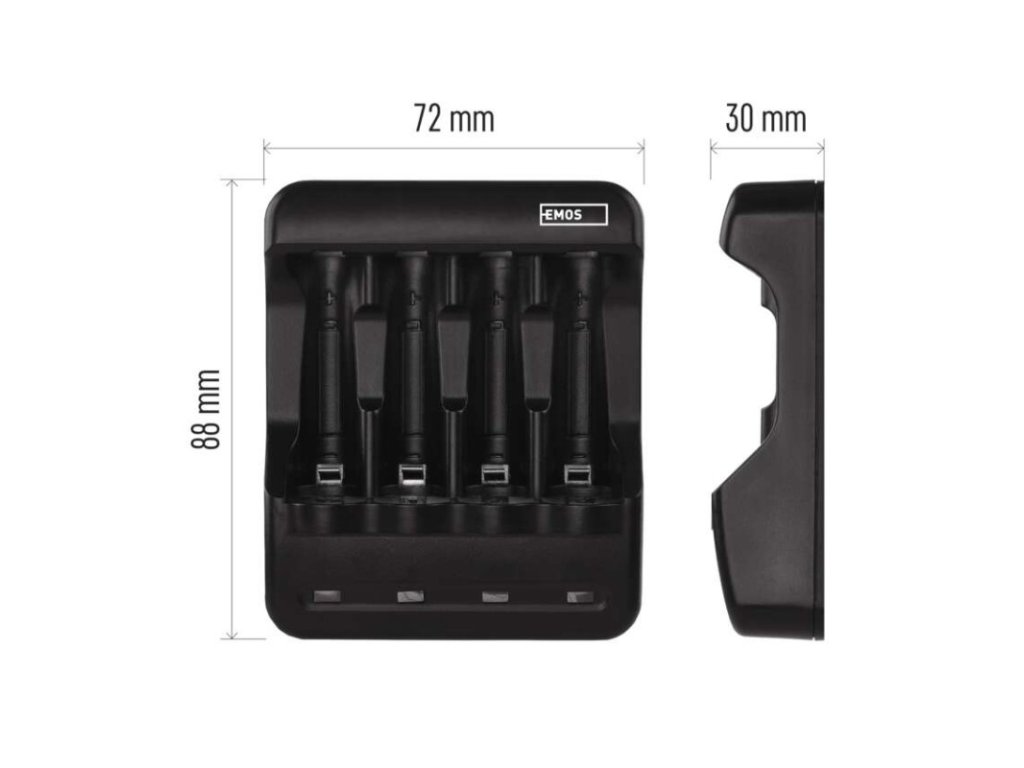 detekce alkalických baterií: ano|detekce poškozených baterií: ano|doba nabíjení 9 V 200 mAh: neuvádí se|doba nabíjení AA 2 700 mAh: 10:00|doba nabíjení AAA 1 000 mAh: 4:00|doba nabíjení C 3 500 mAh: neuvádí se|doba nabíjení D 4 500 mAh: neuvádí se|doba nabíjení přiložených článků: neuvádí se|druh nabíječky: inteligentní|kabel součástí balení: micro USB|nabíjecí proud 9 V: neuvádí se|nabíjecí proud AA: 300 mA|nabíjecí proud AAA: 300 mA|nabíjecí proud C: neuvádí se|nabíjecí proud D: neuvádí se|napájení: USB 5 V/1 A|ochrana proti přepólování: ano|počet článků uvnitř balení: 0|počet nabíjecích kanálů: 4|počet nabíjených baterií současně: 1 až 4|připojení nabíječky: USB|prodejní obal: 1 ks, papírová krabička|rozměr: 88 × 72 × 30 mm|speciální funkce: neuvádí se|typ článků uvnitř balení: bez článků|typ nabíjených baterií: NiMH|velikosti nabíjených článků: AAA, AA|značka: EMOSObrázky jsou pouze ilustrativní.