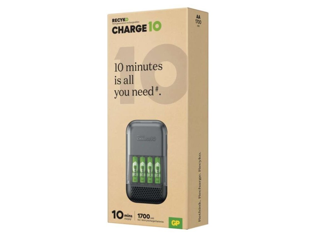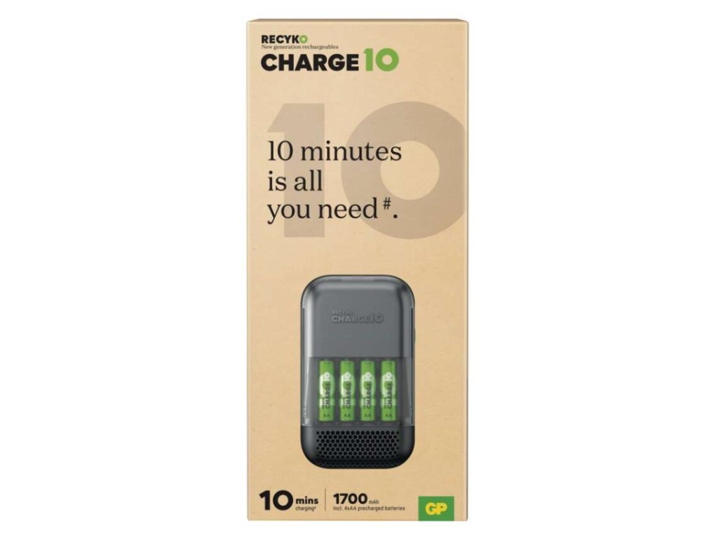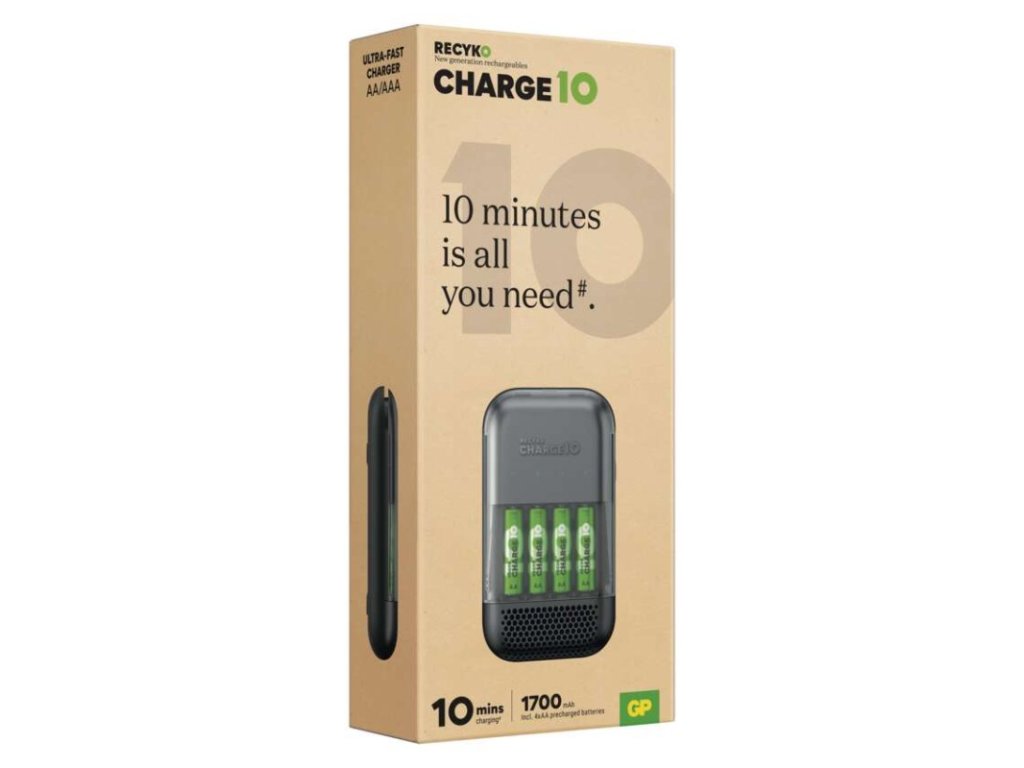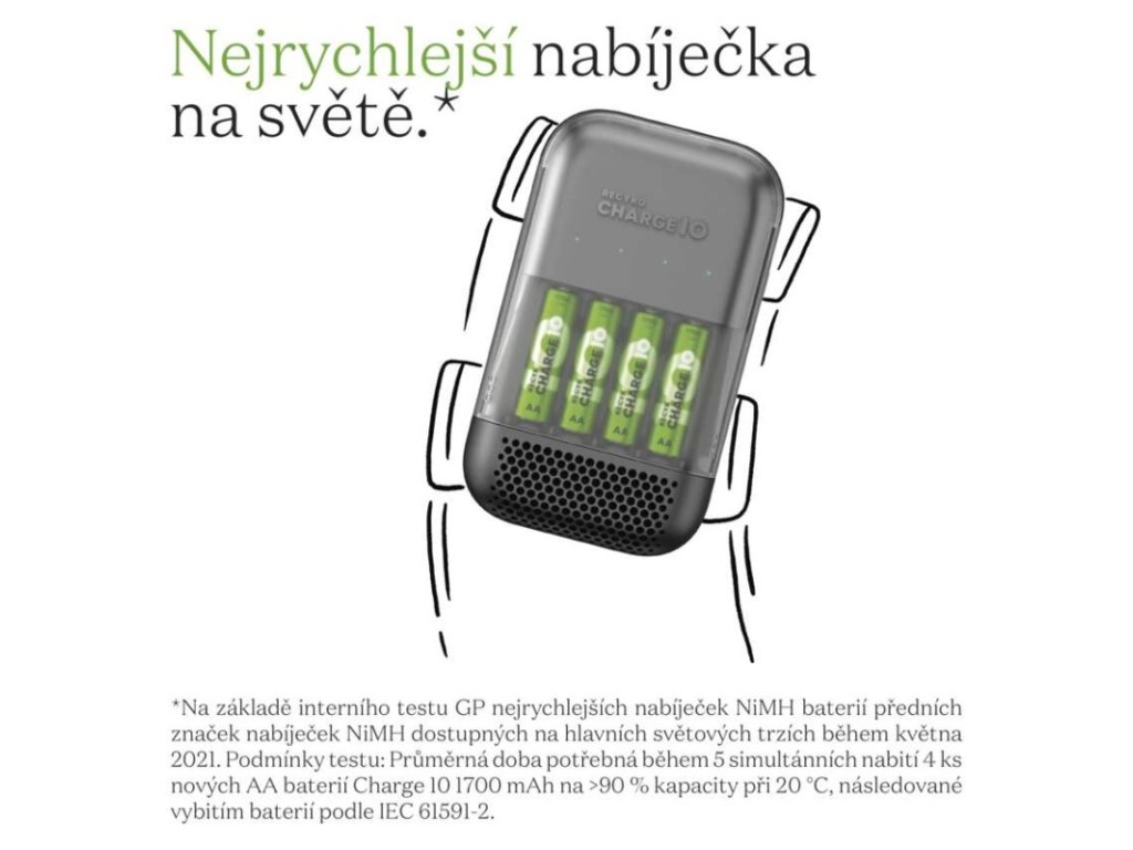 Ultra-rychlá nabíječka baterií GP Charge 10 S491 + 4× AA