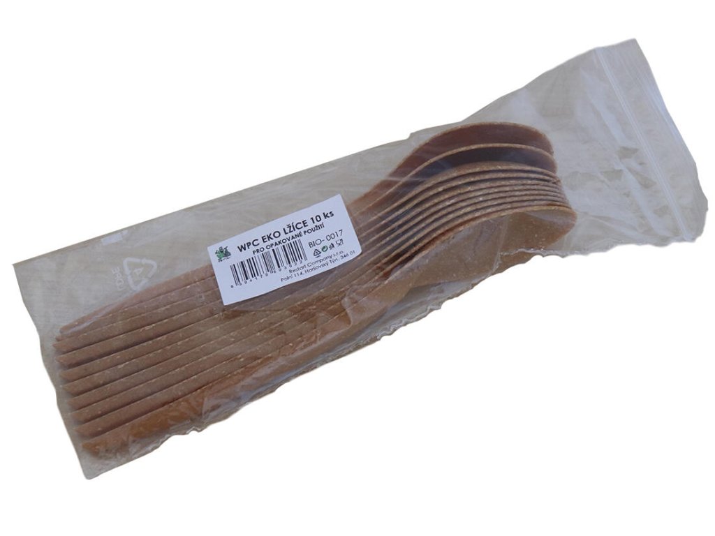 Lžíce EKO WPC (10 ks). materiál: WPC balení: 10 ks Ekologické kompozitní příbory vyrobené z WPC materiálu (dřevo/plast) jsou vhodné k jednorázovému i opakovatenému použití. WPC materiál je velmi odolný vůči vysokým teplotám (do 100°C). Příbory lze opakovaně umývat v myčkách. Inovativní velmi odolná a pevná lžíce je vyrobená z WPC materiálu, který kombinuje nejlepší vlastnosti dřeva a plastových polymerů. Lžíce je opakovaně použitelná, 100% recyklovatelná, odolná vysokým teplotám, vodě i mastnotě.Obrázky jsou pouze ilustrativní.
