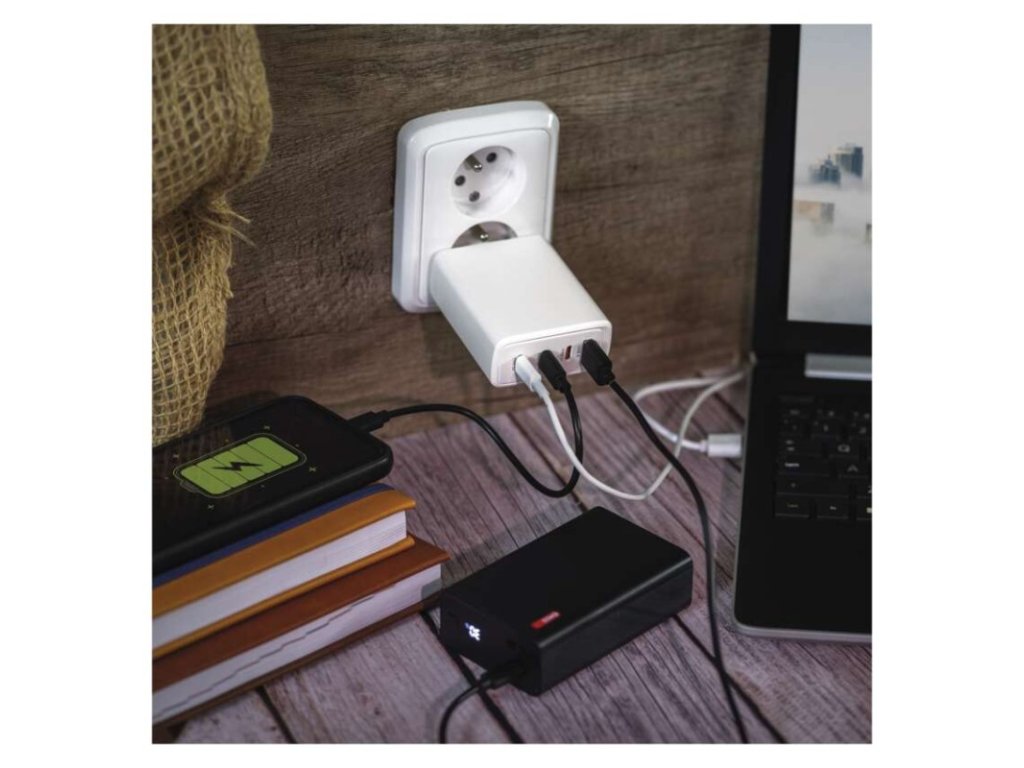 barva: bílá|funkce LED svítilny: neuvádí se|hmotnost: 222 g|kabel: ne|kapacita akumulátoru: neuvádí se|klidový odběr proudu: neuvádí se|LED indikace: ne|LED indikátor nabíjení: neuvádí se|LED indikátor stavu baterie: neuvádí se|max. výstup 1× USB: A: 5 V/3 A – 9 V/3 A – 10 V/2,25 A – 12 V/2,5 A – 20 V/1,5 A (30 W); C1/C2/C3: 5 V/3 A – 9 V/3 A – 12 V/3 A – 15 V/3 A – 20 V/5 A – 21 V/5 A (105 W)|max. výstup celkem: 120 W|max. zatížení – stálé: neuvádí se|max. zatížení – ve špičce: neuvádí se|nabíjení: fast|ochrana proti přetížení, přepětí a zkratu: ano|počet USB výstupů: 4|prodejní obal: 1 ks, papírová krabička|produkt: USB adaptér|rozměr: 57 × 107 × 24 mm|rozměr konektoru: neuvádí se|typ baterie: neuvádí se|typ napájení: neuvádí se|určeno pro: smartphone, tablet, notebook|vstupní napětí: 100–240 V~ 50/60 Hz|výstupní napětí: neuvádí se|výstupní proud: neuvádí seObrázky jsou pouze ilustrativní.