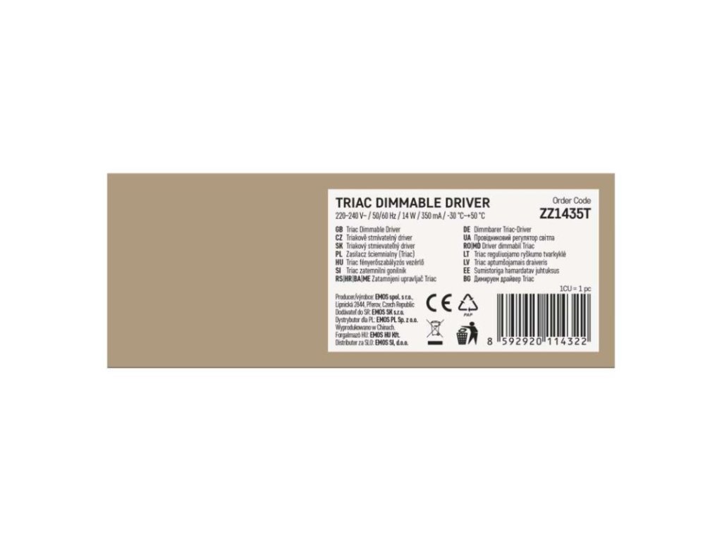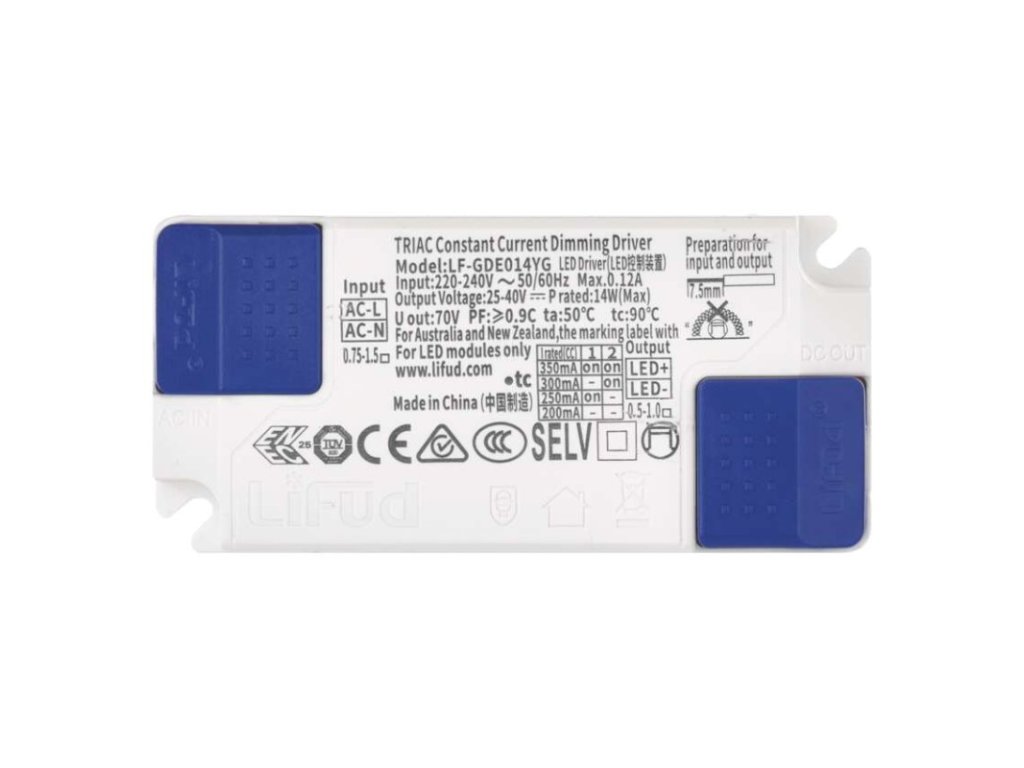frekvence: 50/60 Hz|napětí na výstupu: 25–42 V DC|napětí vstupu: 220–240 V AC|příkon: 14 W|proud na výstupu: 200–350 mA|rozměr: 122 × 40 × 25 mm|typ: TRIAK|určeno pro: neuvádí se|záruční doba: 5 letObrázky jsou pouze ilustrativní.