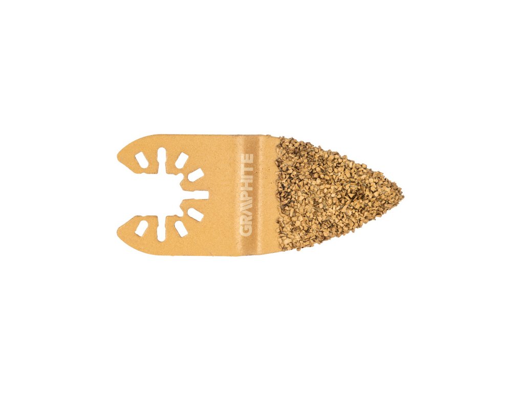 Kotouč pro multifunkční nástroj, půlkruhový HM - povlak z karbidu wolframu, na keramiku, průměr 76 mm Brusná plocha pro multifunkční zařízení, k broušení keramiky GRAPHITE s posypem z karbidu wolframu. Při použití multifunkčního nářadí GRAPHITE umožňuje přesné přímočaré řezání obkladaček a odstraňování spár.Obrázky jsou pouze ilustrativní.