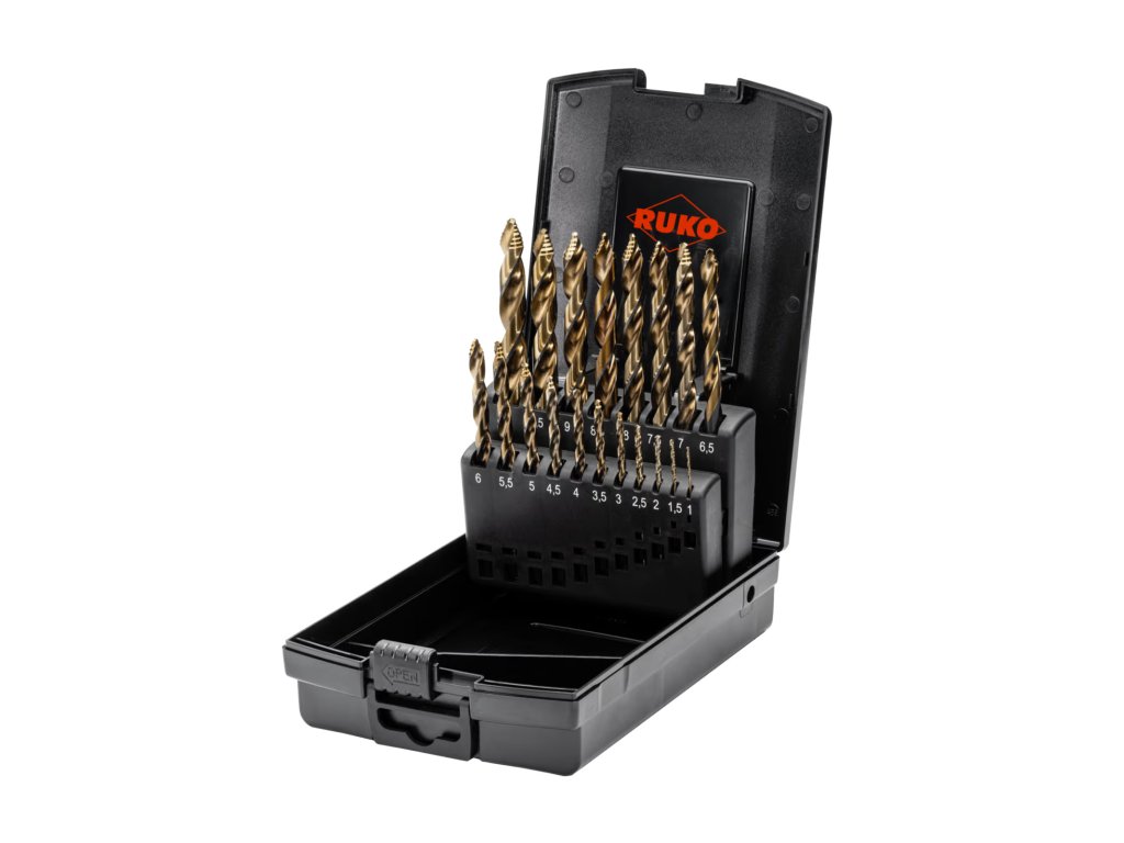 RUKO Sada vrtáků do kovu s břitem FLOWSTEP HSSE-Co5 | 1-10 mm, 19 dílů