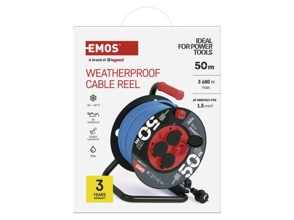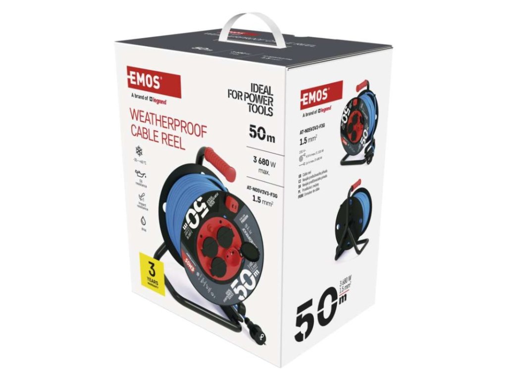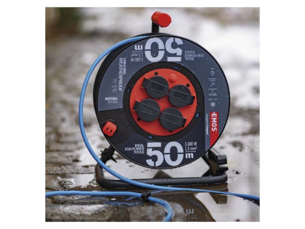 barva kabelu: modrá|další funkce: vodící oko, brzda cívky|délka: 50 m|dětské clonky: ne|hmotnost: 7 800 g|krytí: IP44|max. zatížení navinutého: 4,8 A max./1 100 W|max. zatížení rozvinutého: 16 A max./3 680 W|napětí: 230 V~|počet zásuvek: 4|prodejní obal: 1 ks, krabice|produkt: buben s pohyblivým středem|proud: 16 A|průřez vodiče: 1,5 mm²|rozměr: 320 mm|tepelná pojistka: ano|typ izolace: PVC|vodič: AT-N05V3V3-F|záruční doba: 3 rokyObrázky jsou pouze ilustrativní.