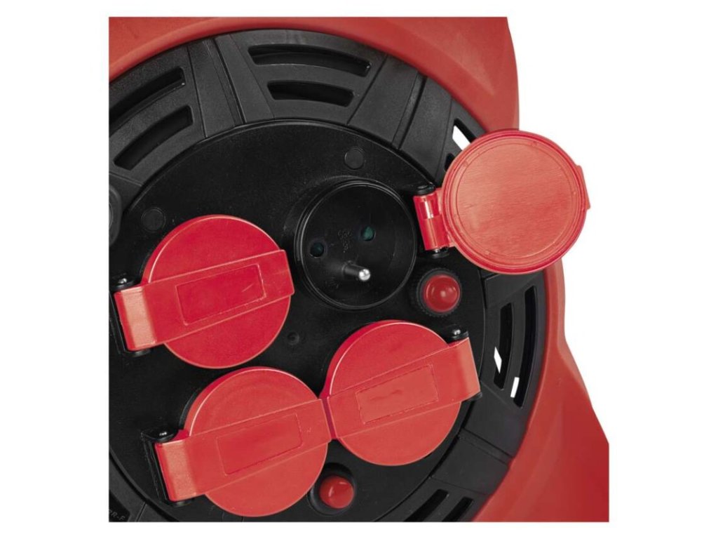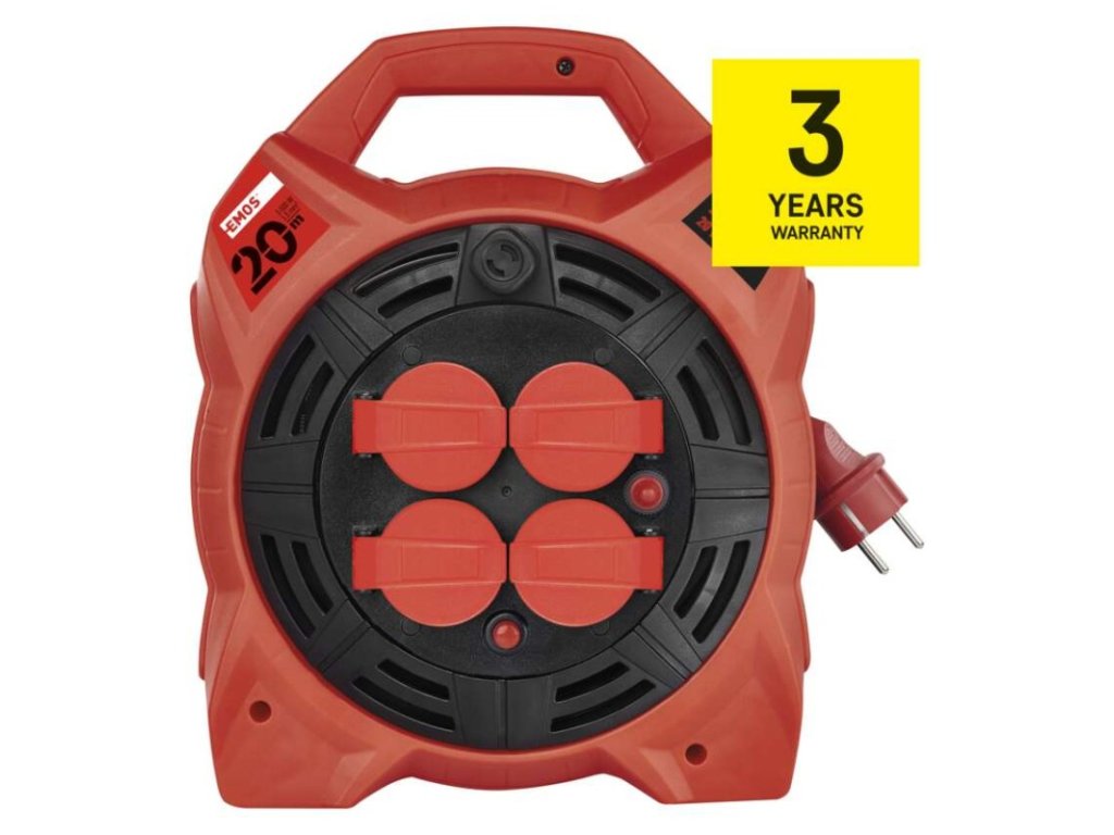 barva kabelu: červená/černá|další funkce: LED reflektor 20 W/1 600 lm/6 500 K|délka: 20 m|dětské clonky: ne|hmotnost: neuvádí se|krytí: IP44|max. zatížení navinutého: 4,35 A max./1 000 W|max. zatížení rozvinutého: 13,04 A max./3 000 W|napětí: 230 V~|počet zásuvek: 4|prodejní obal: 1 ks, krabice|produkt: buben s pohyblivým středem|proud: 13 A|průřez vodiče: 1,5 mm²|rozměr: 247 × 157 × 310 mm|tepelná pojistka: ano|typ izolace: guma|vodič: H05RR-F3G|záruční doba: 3 rokyObrázky jsou pouze ilustrativní.