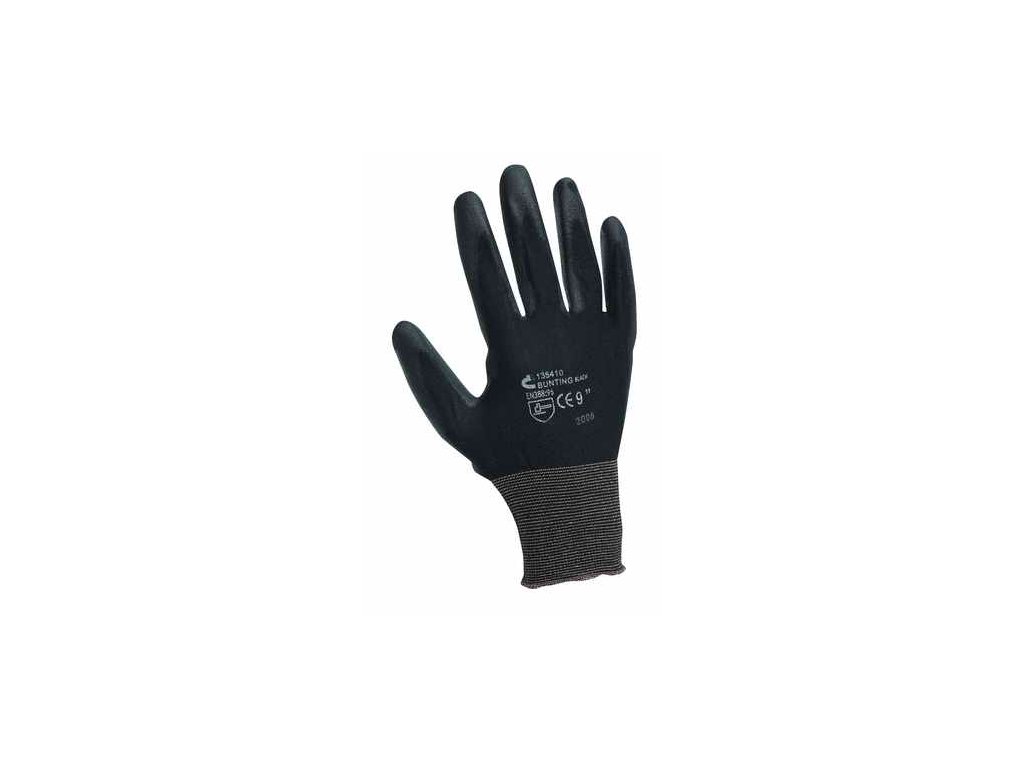 BUNTING BLACK - rukavice pletené nylonové bezešvé s tenkou vrstvou polyuretanu v dlani a na prstech a pružnou manžetou velikost 9Obrázky jsou pouze ilustrativní.
