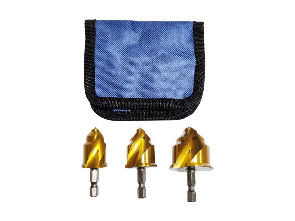 Tato sada výstružníků je určena pro přesné srážení hran a kalibraci plastových potrubních systémů. Robustní konstrukce a titanová povrchová úprava zajišťují dlouhou životnost nástroje i při každodenním nasazení.Technické specifikace:
