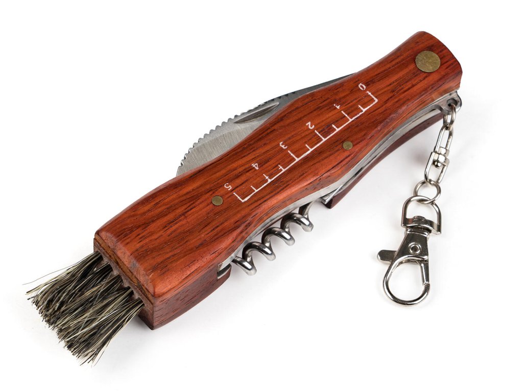 Nůž na houby AKCENT 7 cm, se štětečkem, dřevěná rukojeť. délka: 7 cm materiál: nerez, dřevěná rukojeť Houbařský nůž AKCENT je dokonalý pomocník nejen při sběru a čištění hub. Nožík je skládací a obsahuje štěteček k očištění hub, nůž s ostrou čepelí, karabinku a vývrtku.Obrázky jsou pouze ilustrativní.