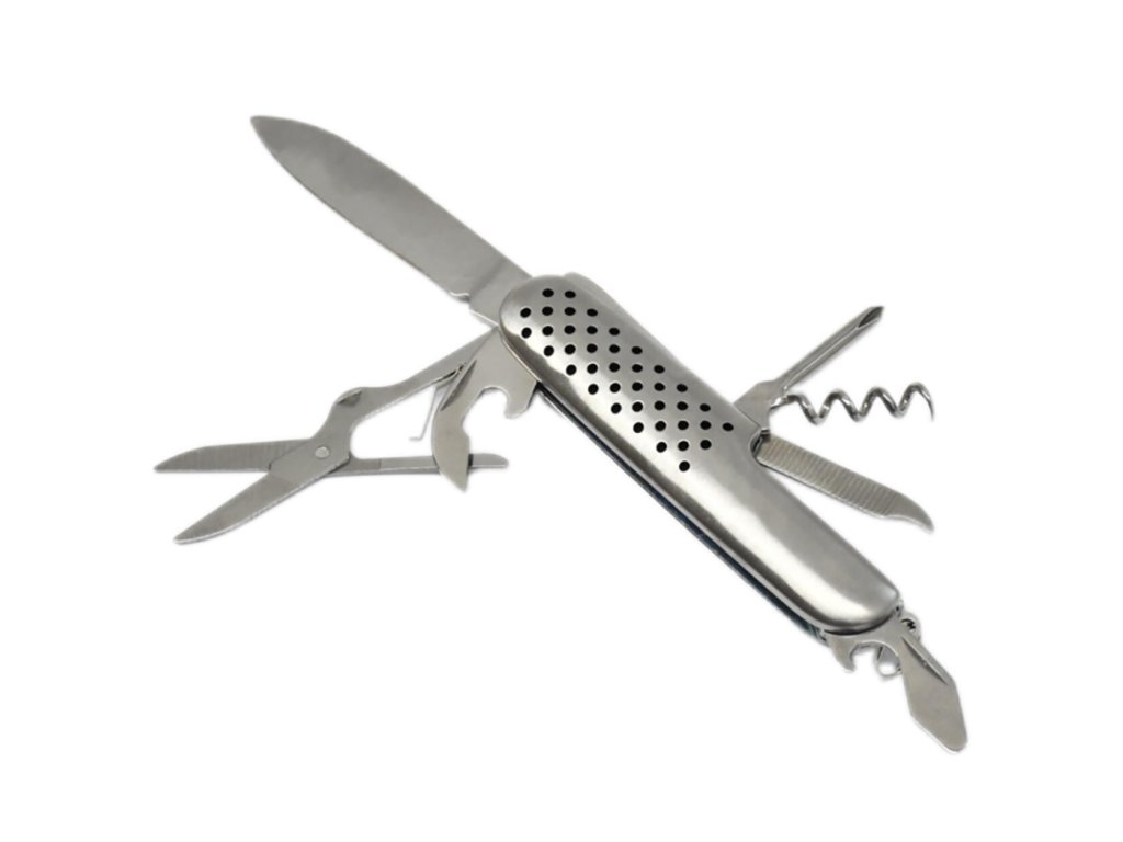 Nůž zavírací 7 funkcí, 9,3 x 2,4 x 1,4 cm, nerez. rozměry: 9,3 x 2,4 x 1,4 cm materiál: nerezová ocel 2CR13 Multifunkční zavírací nůž. Funkční komponenty 7 kusů: - hlavní nůž - nůžky - otvírák na konzervy - otvírák na víno - otvírák na láhve - křížový šroubovák - ocelový pilníkObrázky jsou pouze ilustrativní.