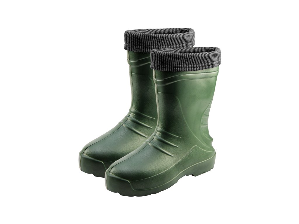 Holínky EVA, velikost 45, 100 % ochrana před vlhkostí, velmi lehké, vyměnitelná zateplená vložka (izolace proti chladu do -30 ºC), protiskluzové Holínky EVA VERTO (ref. č. 15G935), velikost 45. Poskytují 100% ochranu proti vlhkosti. Protiskluzová podrážka poskytuje bezpečnost a pohodlí při práci. Holínky jsou velmi lehké a vyměnitelná zateplená vložka poskytuje izolaci proti chladu až do -30 °C.Obrázky jsou pouze ilustrativní.