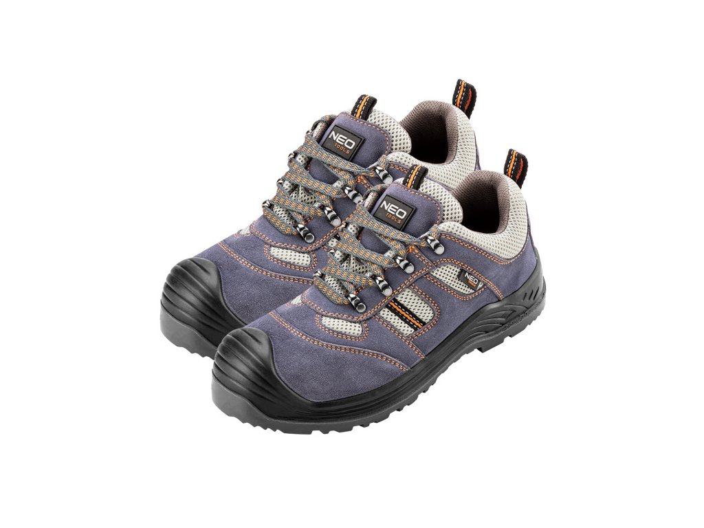 Pracovní obuv, semiš, velikost 45, protiskluzová podrážka s tlumicím systémem, odolná proti oděru, odolná proti oleji, benzínu a dalším organickým rozpouštědlům, ocelová špička odolná proti nárazu až 200J, ocelová stélka proti propíchnutí. antielektrostatická stélka, kovová poutka, prodyšný materiál, bota vyrobena v kategorii S1P SRC (SRC - odolnost proti uklouznutí na keramickém podkladu pokrytém roztokem laurylsulfátu sodného (SLS) a na ocelovém podkladu pokrytém glycerolem), certifikát CE Pracovní poloboty NEO patří mezi základní ochranné pracovní prostředky. Svršek vyroben z vysoce kvalitního semiše. Vsádky z prodyšného materiálu zajišťují dobrou ventilaci. Protismyková podešev vybavena systémem tlumení nárazů, zajišťuje bezpečnost a pohodlí. Kovová planžeta proti přepíchnutí a zesílená kovová špička chrání před mechanickými úrazy. Obuv díky měkkému vnitřku nabízí velmi vysoký komfort při práci. Označení CE je zárukou bezpečnosti a potvrzuje, že výrobek splňuje všechny požadavky Evropské unie. Značka NEO splňuje očekávání profesionálů.Obrázky jsou pouze ilustrativní.