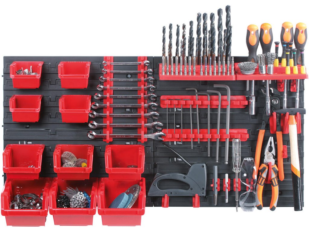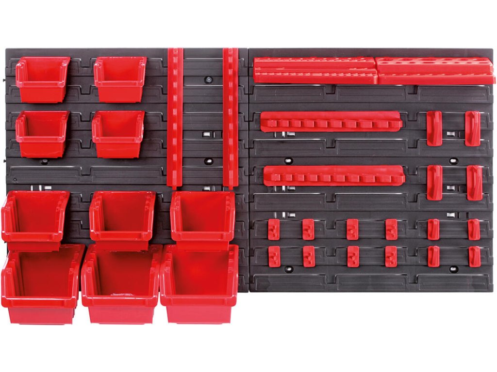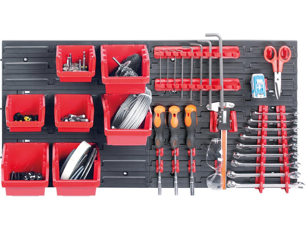Závěsný systém + 10 boxů na nářadí ORDERLINE 800 x 195 x 400 mm. rozměry: 800 x 195 x 400 mm materiál: plast Univerzální panel na nářadí ORDERLINE, který lze připevnit na stěnu, je nepostradatelným a velmi užitčeným pomocníkem v domě, garáži či dílně.Obrázky jsou pouze ilustrativní.