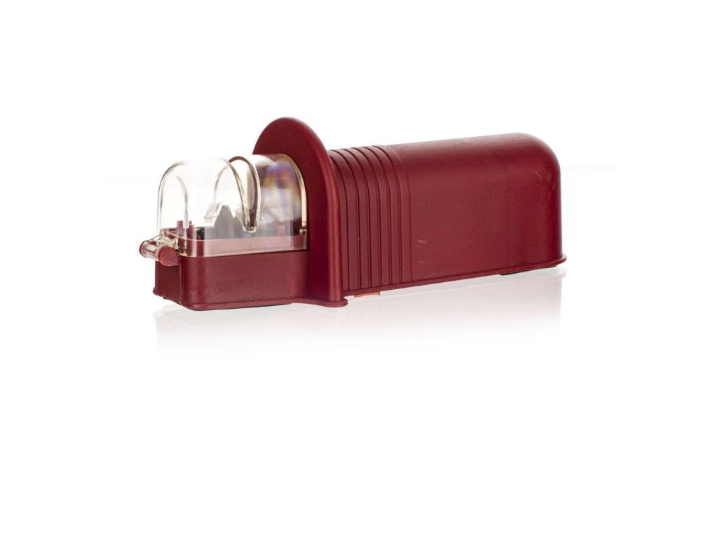 Ostřič ocelových nožů CULINARIA RED. Brousek CULINARIA Red je určen pro broušení klasických ocelových kuchyňských nožů, brusná část je osazena keramickými kotoučky, vodící drážka zajišťuje správný úhel ostří. Brousek stačí opřít o pevnou podložku a vodící drážka nasměruje nůž pod správný úhel broušení mezi keramické kotoučky. Broušení je tak velmi snadné a šetrné a přitom velmi kvalitní v porovnání s jinými kuchyňskými ostřiči.Obrázky jsou pouze ilustrativní.