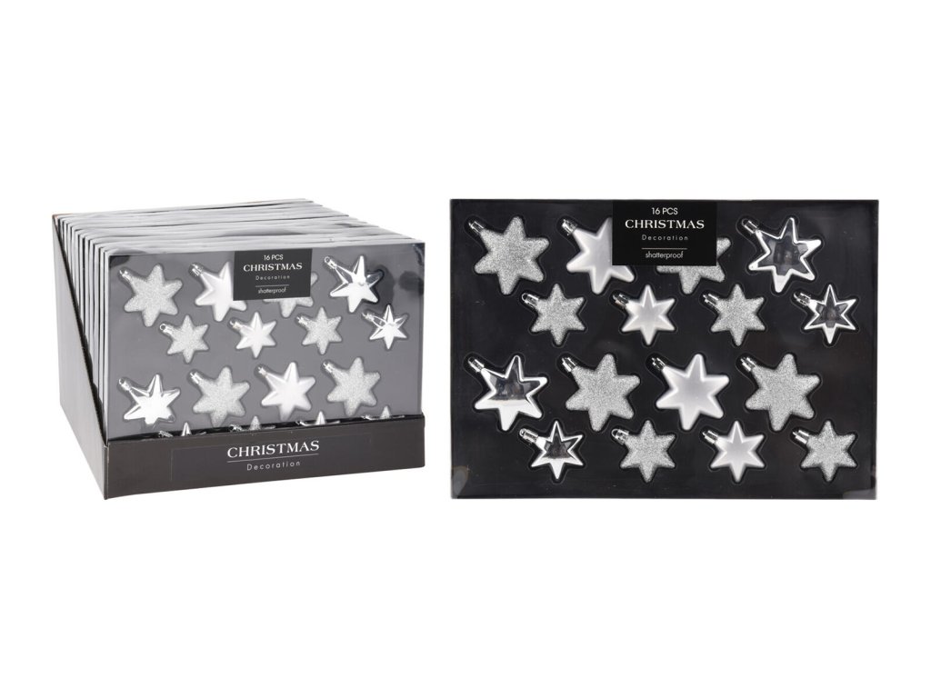 Ozdoba vánoční HVĚZDA (8 x 6 cm / 8 x 5 cm) STŘ mix (16 ks). rozměry: 8 x 6 cm / 8 x 5 cm barva: stříbrná mix odstínů v balení Vánoční sada obsahuje závěsné ozdoby ve tvaru hvězdy. Tradiční ozdoby pro zkrášlení Vašeho domova ve vánočním období.Obrázky jsou pouze ilustrativní.
